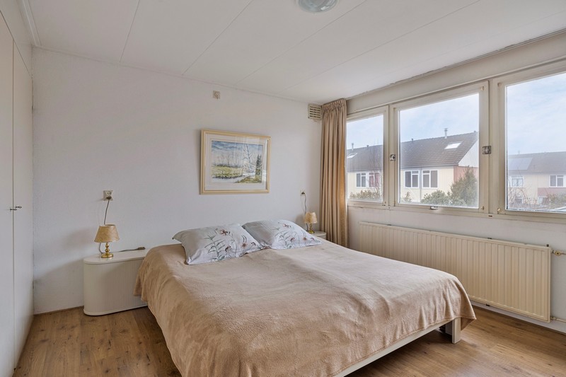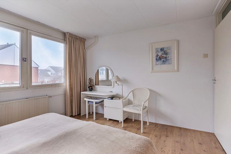 Op de eerste verdieping vinden we drie ruime slaapkamers waarvan er twee zijn voorzien van vaste kastruimte. De derde slaapkamer heeft een vaste kast op de overloop die uiteraard ook op een andere manier te gebruiken is. De badkamer is voorzien van een douche, toilet en wastafel. De badkamer biedt voldoende ruimte voor een ligbad mocht u dat willen.