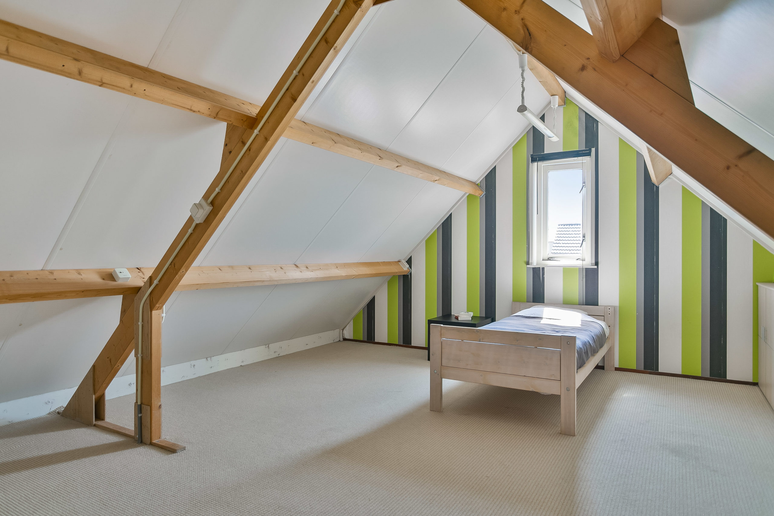 Op de tweede verdieping, die met vaste trap te bereiken is vinden we wederom een royale slaapkamer met vaste kastruimte en een bergruimte waar ook de CV is geplaatst.