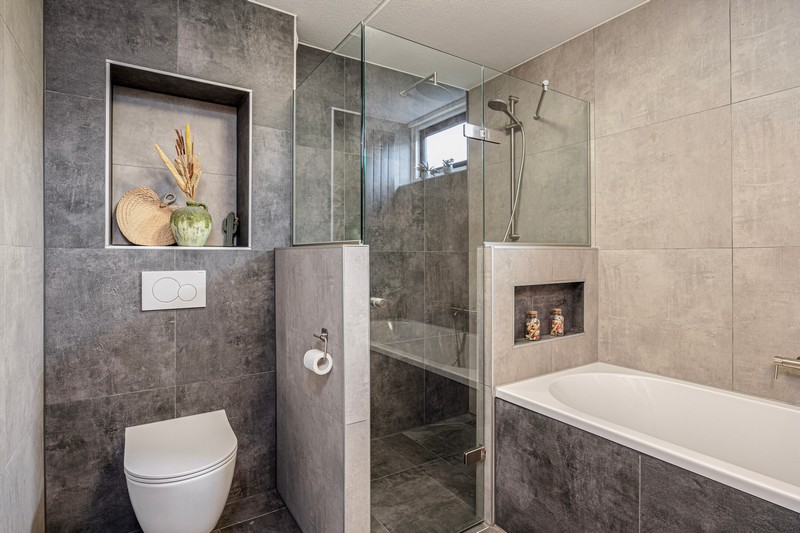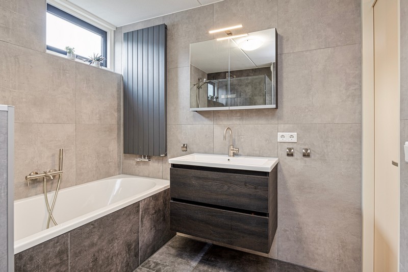 Door de opbouw op de garage, keuken en bijkeuken vinden we 4 riante slaapkamers op de verdieping. De ouderslaapkamer heeft een vaste kastenwand en ook nog een balkon. De moderne badkamer is nog geen jaar oud en bestaat uit een ligbad, ruime inloopdouche, wastafelmeubel en handig 2e toilet.