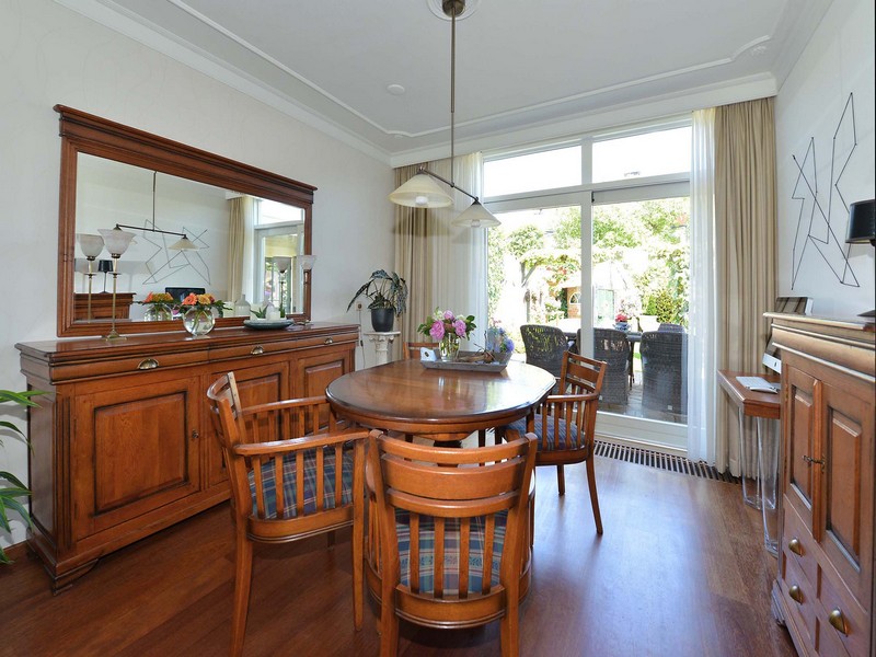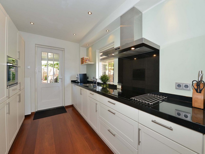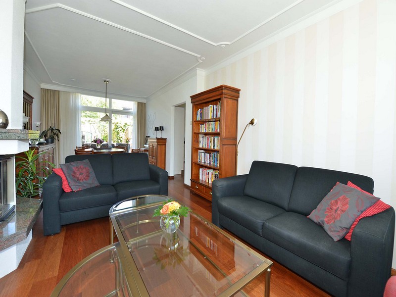 Op de begane grond vinden we naast de hal, toilet en handige bergkast een doorzonwoonkamer die voorzien is van fraaie parketvloer, sfeervolle gashaard en schuifpui naar het achter de woning gelegen terras. De dichte keuken is voorzien van een moderne inbouwkeuken met een overdaad aan vaste kastruimte, inductiekookplaat, afzuiging, koelkast, vaatwasser en combimagnetron.