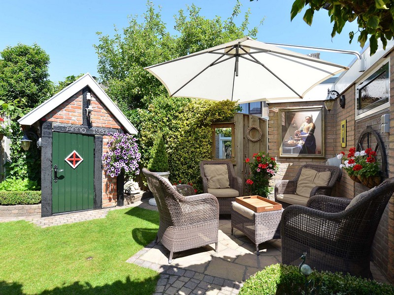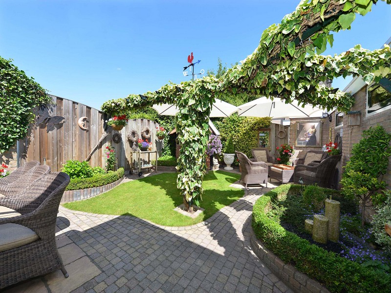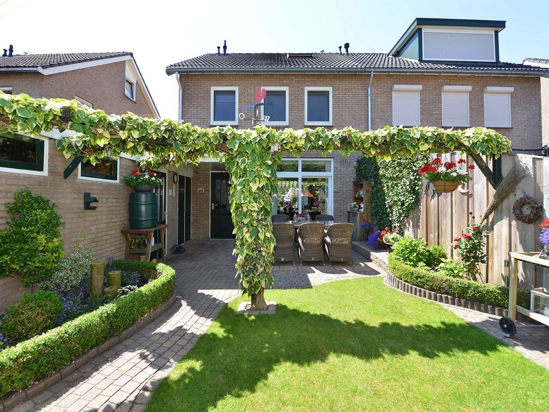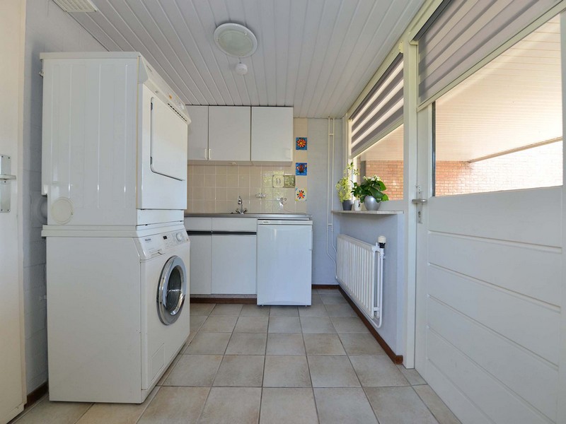 Op de oprit kunnen minimaal 2 auto’s staan. Via de poort kunnen we de achtertuin bereiken die bijzonder fraai is aangelegd. De garage is opgedeeld in een ruime berging en handige bijkeuken. De wasmachine en droger alsmede handig aanrechtblok met spoelbak vinden hier een plek.
