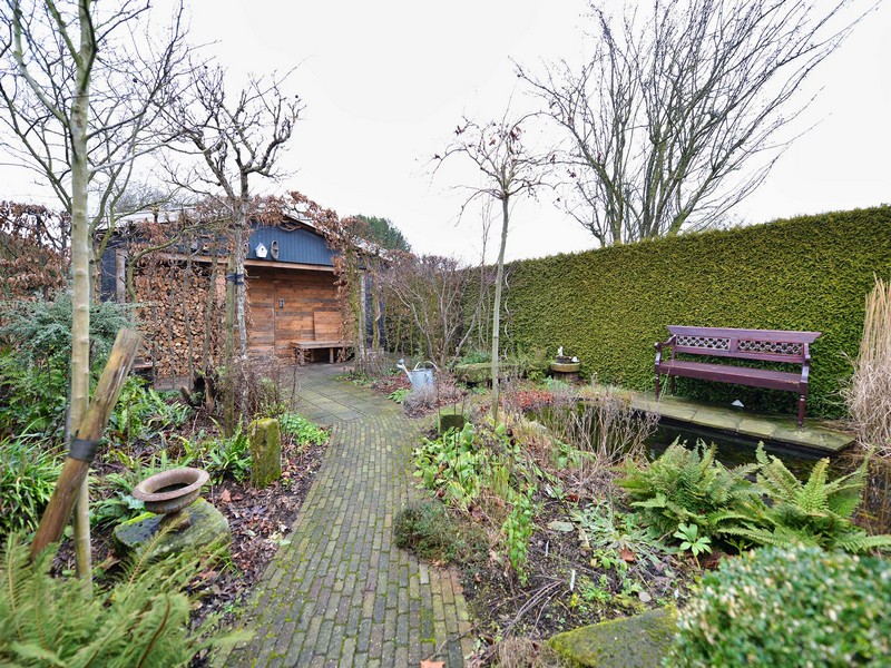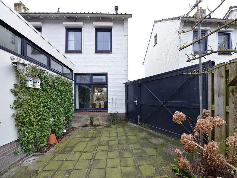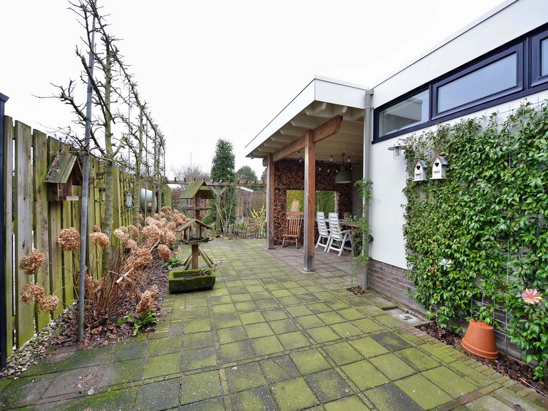 De diepe achtertuin van de woning is gelegen op het noordwesten. En als u denkt dat u vrijwel geen zon heeft dan heeft u het mis. Vanaf een uur of 2 in de middag tot laat in de avond staat de zon aan de achterzijde op de woning. En het voordeel van zo’n diepe tuin is uiteraard dat u zowel zon als schaduwplekken kunt creëren. In de tuin staat een grote berging (voormalige garage)/hobbyruimte welke de achtertuin in 2-en deelt waardoor een eventuele moestuin of “speel”tuin voor de kinderen aan het oog wordt onttrokken. Laten we ook de privacy in uw eigen tuin niet vergeten!