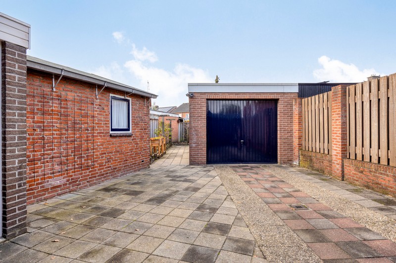 Aan de rechterzijde van de woning vinden we een ruime oprit voor meerdere auto’s. Je kunt de auto dus altijd kwijt op eigen terrein en hoeft nooit ver te lopen. De ruime garage (8,14m x 3,32m) heeft een fijn afmeting. Niet alleen de auto kan goed worden gestald in de garage maar er is ook voldoende ruimte voor de hobby!