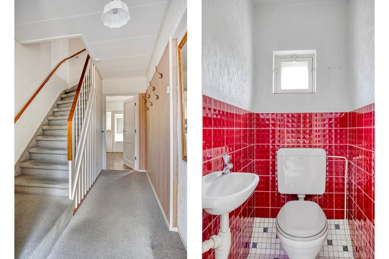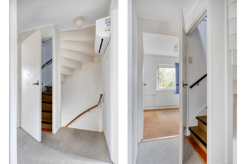 Via de hal met toilet en kelderkast gaan we naar de 1e verdieping