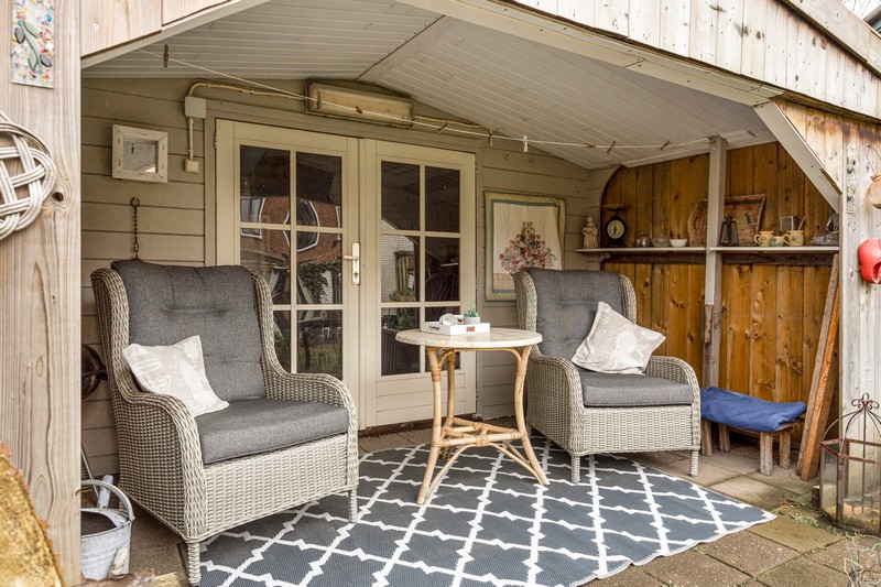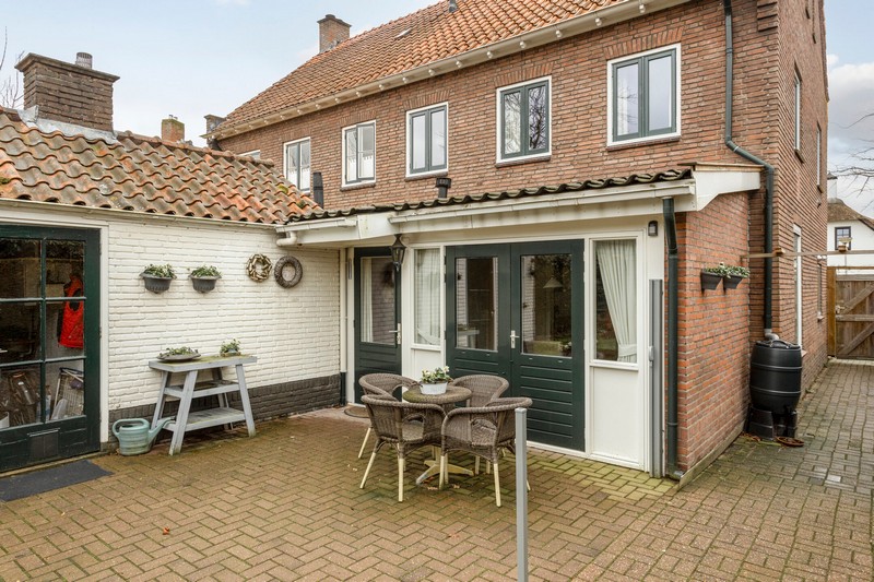 Parkeren aan de Bevertstraat is geen probleem. Eventueel kunt u overwegen op eigen terrein een parkeerplek aan te leggen. De tuin aan de voorzijde biedt in ieder geval voldoende ruimte. Aan de achterzijde vinden we een op het oosten gelegen en volledig omsloten achtertuin met tuinberging. De tuin is diep genoeg voor de nodige zon maar ook schaduw direct achter de woning.