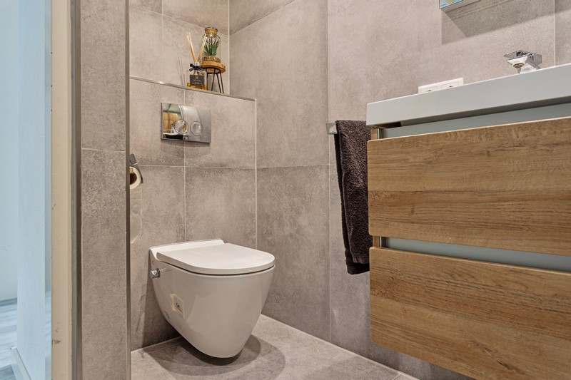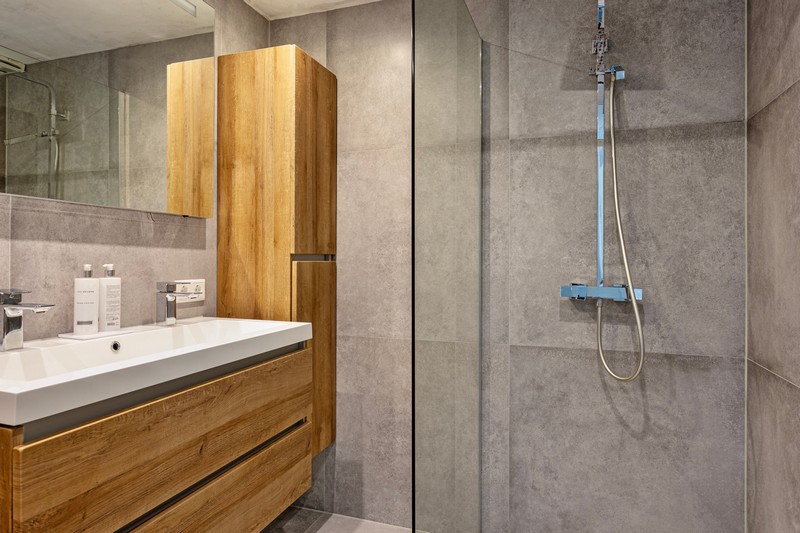Op de eerste verdieping zijn er drie ruime slaapkamers. De moderne badkamer maakt deze verdieping helemaal af. Je hebt er een inloopdouche, toilet en dubbel wastafelmeubel.