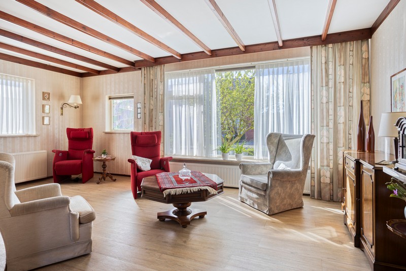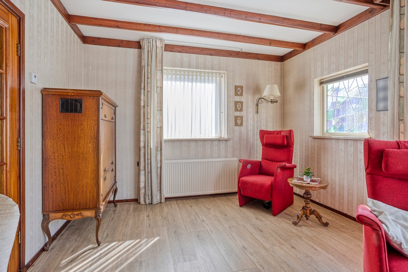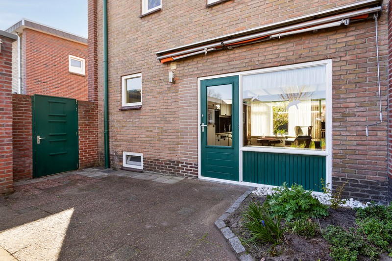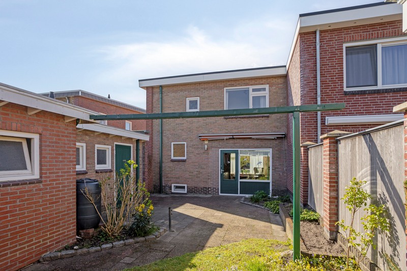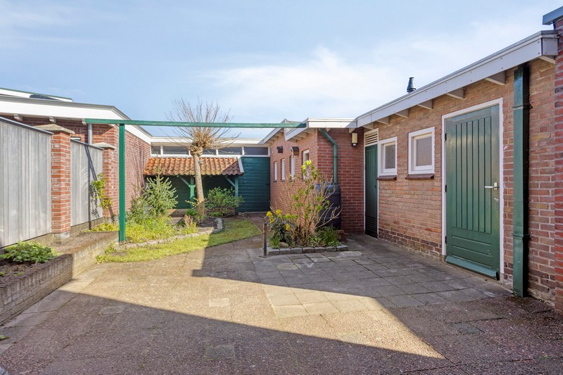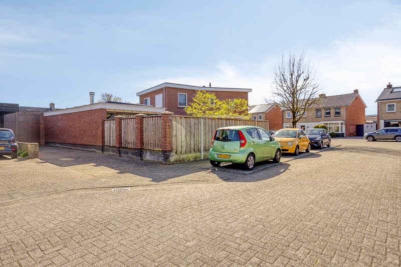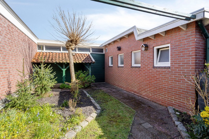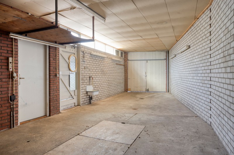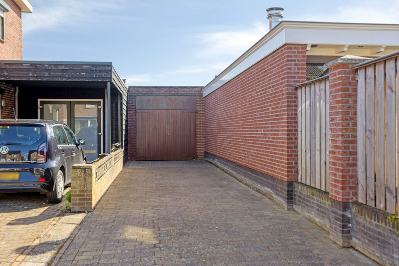 De achterdeur geeft toegang naar het terras en de omsloten achtertuin die opvallend veel privacy biedt. Achter de woning staat een heerlijk ruime hobbyruimte met een grootte van ruim 70 m². De garage/berging, voormalig theorielokaal en ruime garage met 2e oprit is een ideale plek voor de hobbyist of voor iemand die een praktijk aan huis zou willen. Parkeerruimte voldoende op de 2 bij de woning behorende opritten.
