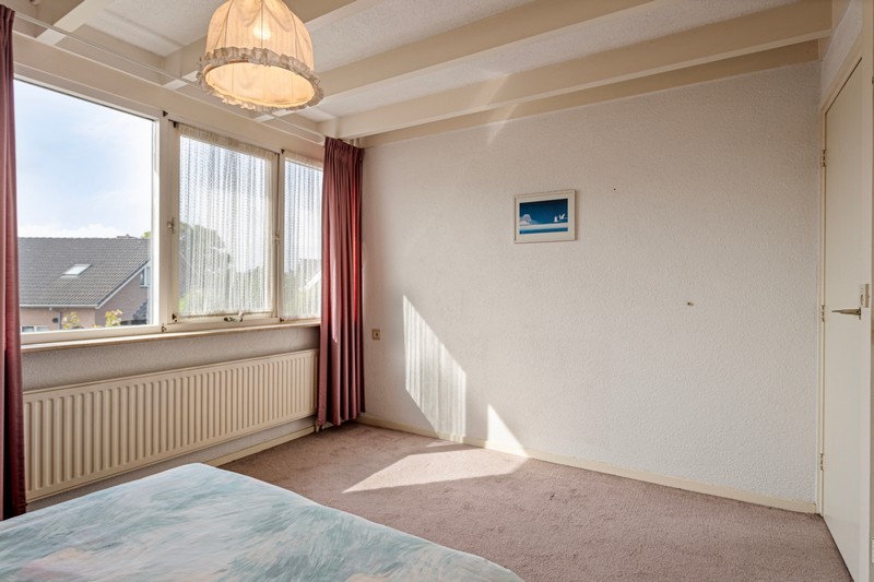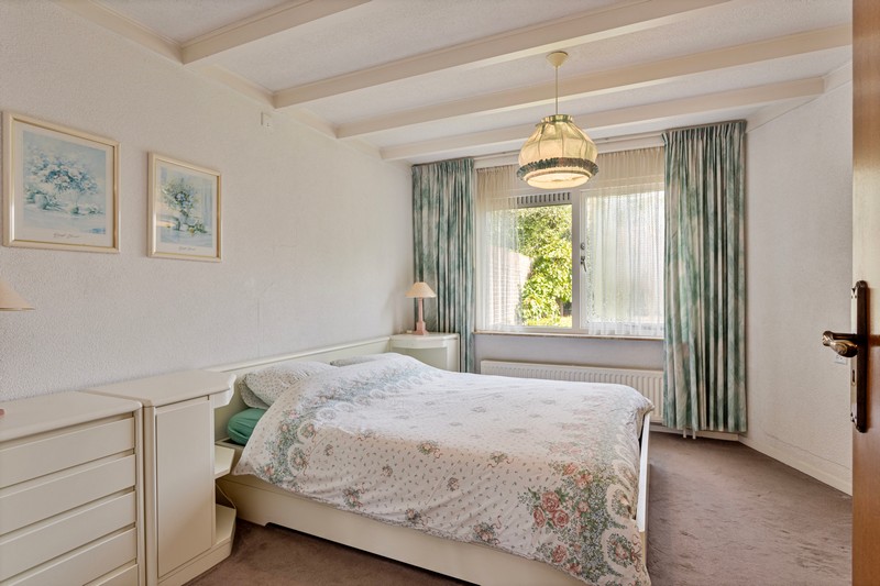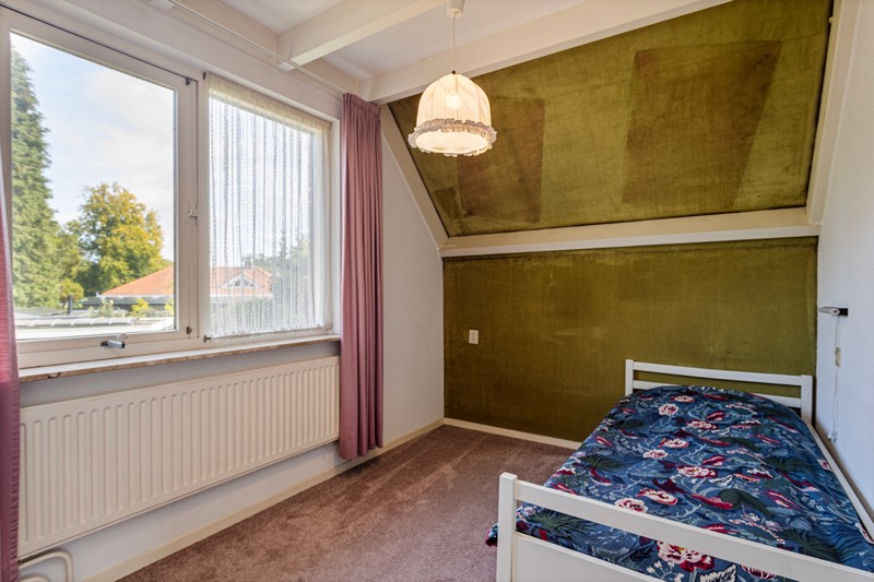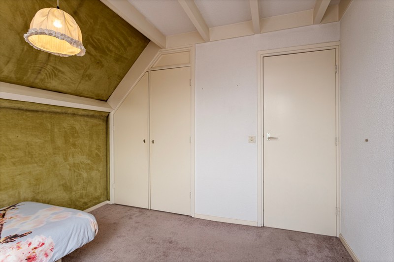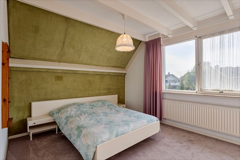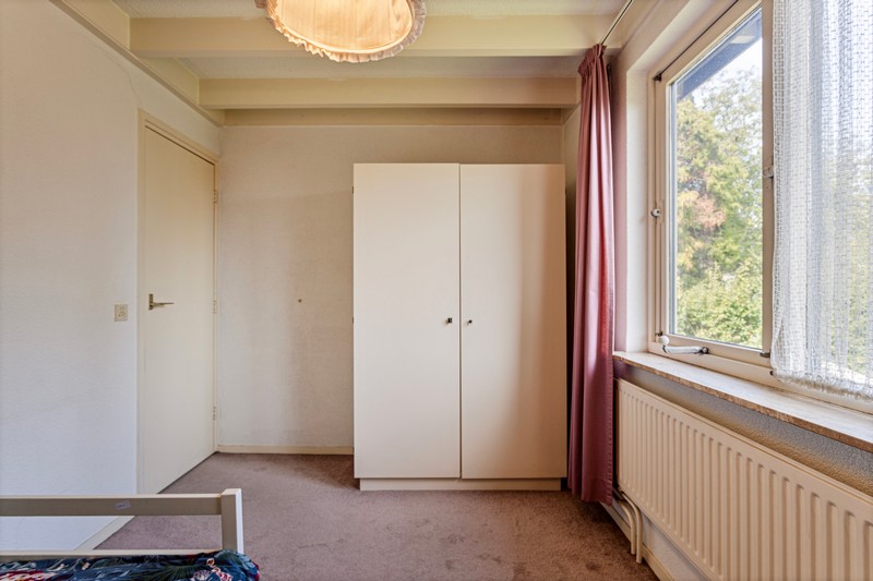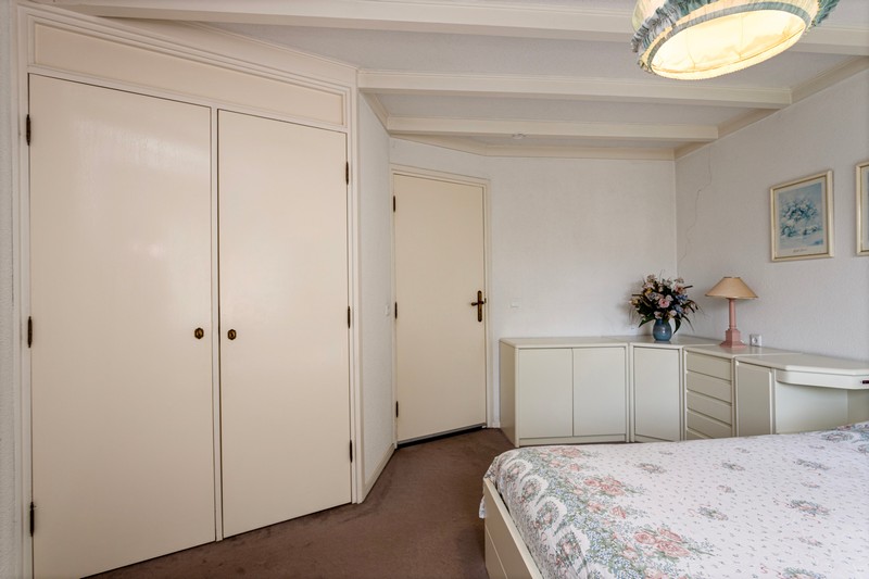 En de eerste slaapkamer vinden we op de begane grond! De slaapkamer heeft vaste kastruimte en kijkt fraai uit over de achtertuin. Direct naast de slaapkamer bevindt zich een badkamer met douche, wastafel en toilet.