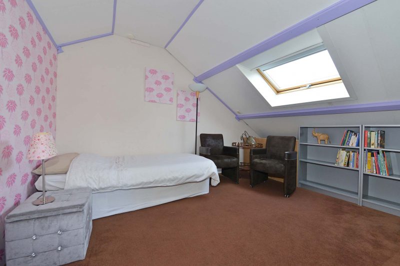 Op zolder vinden we naast veel bergruimte een, uiteraard, ruime 5e slaapkamer.