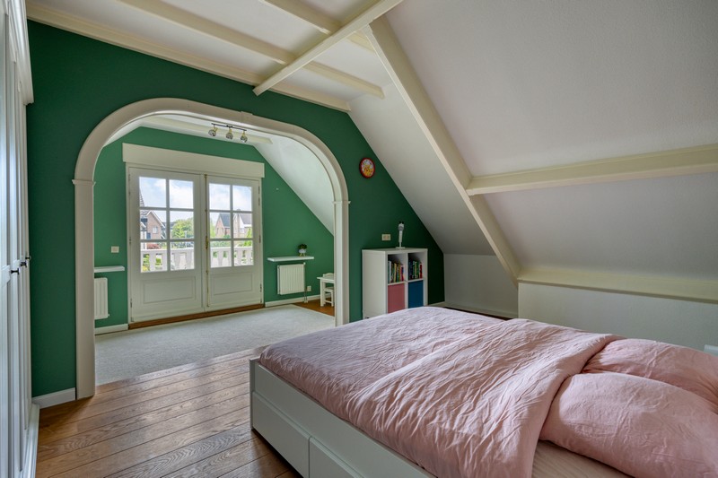 Zoals reeds aangegeven is ook de 1e verdieping uitgebouwd. De ouderslaapkamer is boven de garage uitgebouwd. Ruimte voor een knusse TV-hoek en een nis voor de make-up tafel is reeds aanwezig evenals een groot balkon. Ook de andere 2 slaapkamers zijn ruim van opzet. Heeft u meer slaapkamers nodig? De indeling is eenvoudig te wijzigen, mocht u dat willen.