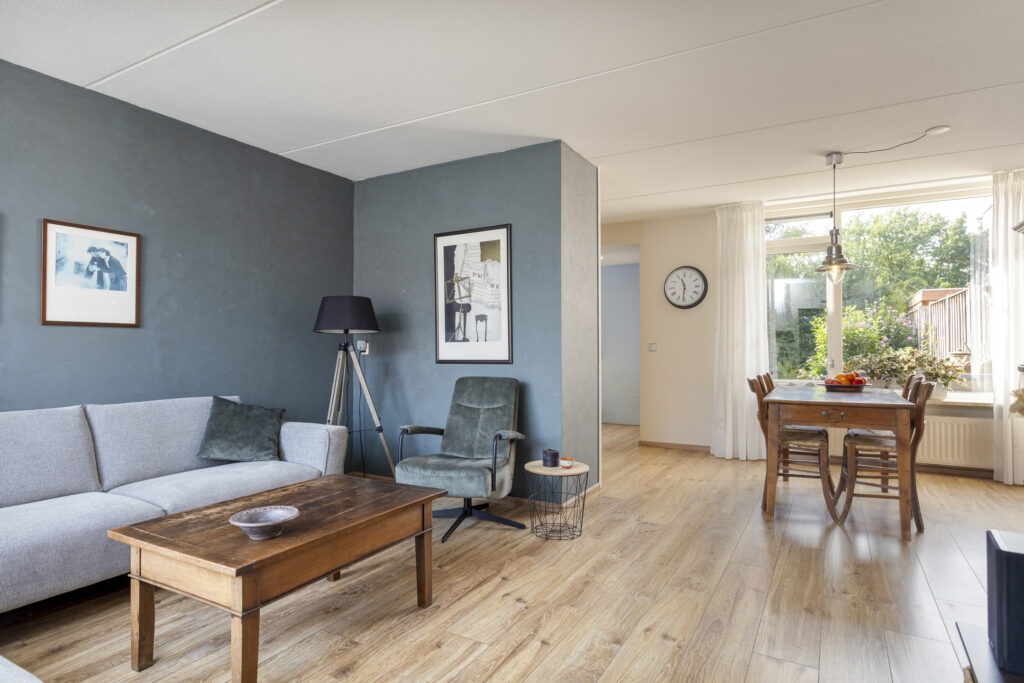 We lopen door naar het leefgedeelte waar je profiteert van de vele lichtinval dankzij de grote ramen aan voor- en achterzijde. De Z-vormige woonkamer heeft aan de voorzijde het zitgedeelte en aan de achterzijde nabij de keuken vinden we het eetgedeelte. Opvallend is het feit dat je zowel aan de voor- als achterzijde geen inkijk hebt!