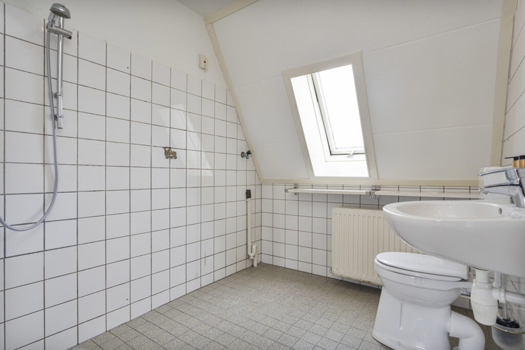 Ook de eerste verdieping is lekker ruim. Er zijn drie goede slaapkamers. De badkamer kan een vleugje liefde gebruiken. Er is een douche, toilet en wastafel aanwezig en er is ook nog voldoende ruimte voor een ligbad.