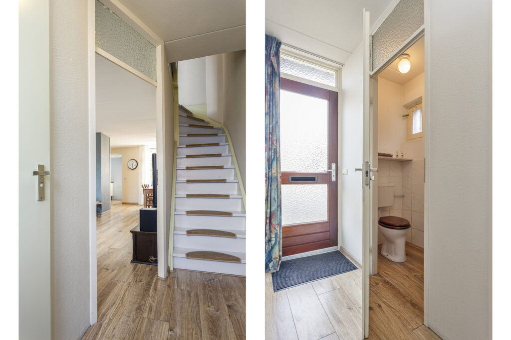 Via de voordeur stap je de hal binnen waar we een nette toiletruimte en de meterkast vinden.