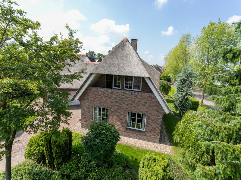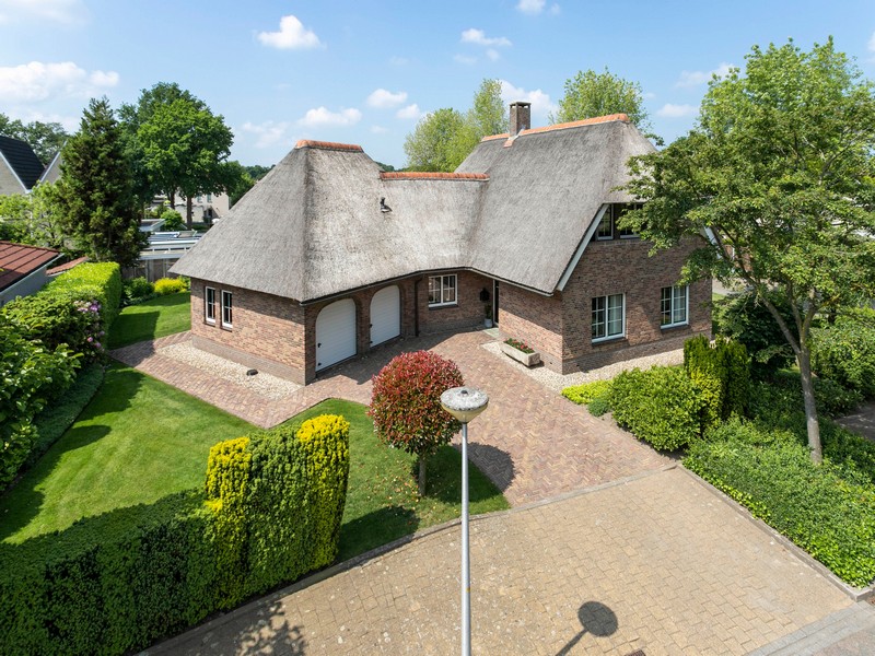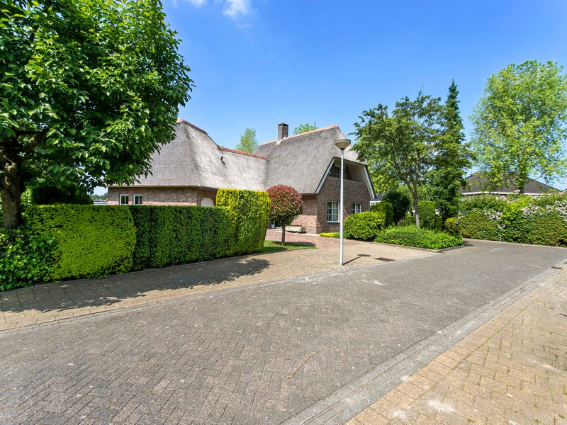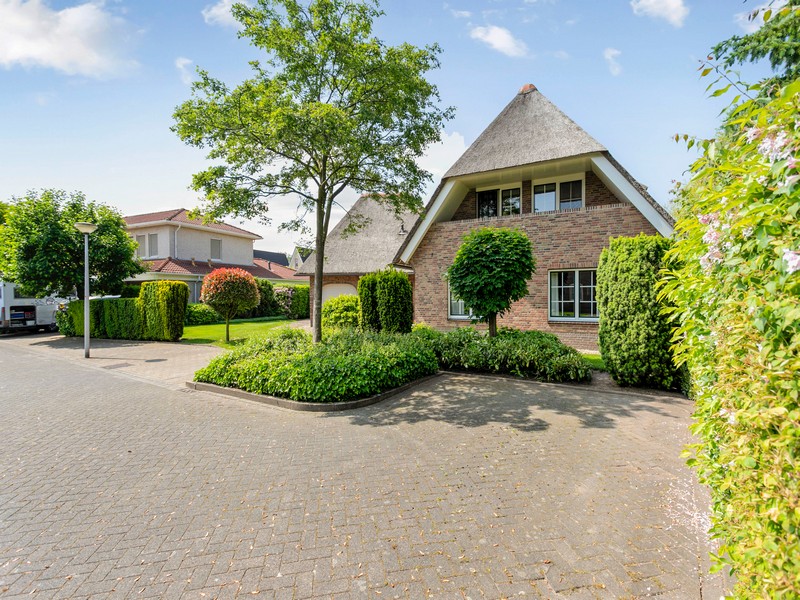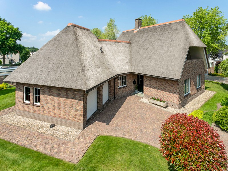 Uitstraling? Reken maar van YES. Op Duizendblad 48 is misschien wel het mooiste huis van de Hassinkbrink gelegen. Alles klopt aan deze onder architectuur gebouwde en met riet gedekte villa. De fraaie rood-bruin gemêleerde gevelsteen, koperen dakgoten, keramische nokvorsten, de doorgemetselde schoorsteen en ga zo maar even door.