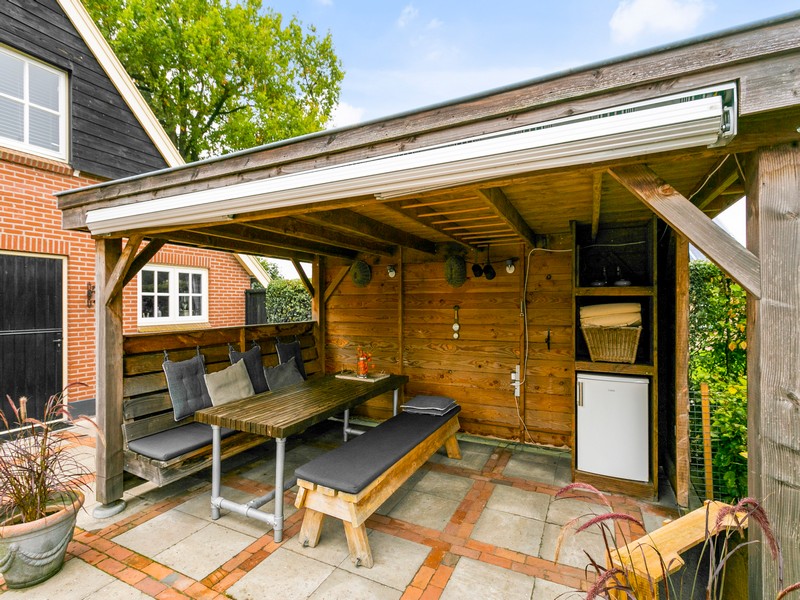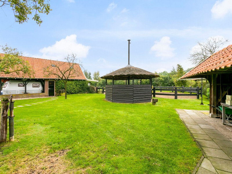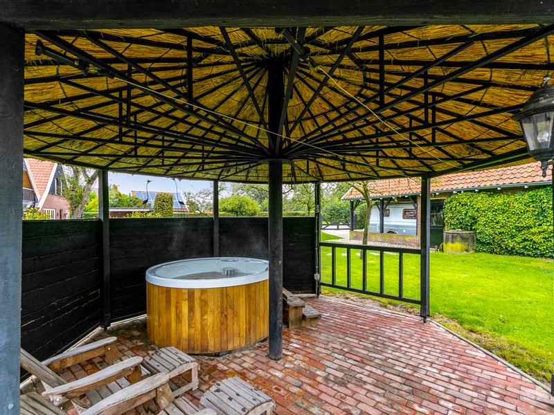 En dat kan ook buiten in de fraai aangelegde tuin rondom de woning. Direct achter de woning vinden we een ruim terras met een heerlijke overdekte zit. Een tweede overkapping “de hooiroede” biedt plaats aan een jacuzzi en ligstoelen. Mocht je nog niet tot rust komen in deze fraaie omgeving dan gaat je dat hier zeker wel lukken.