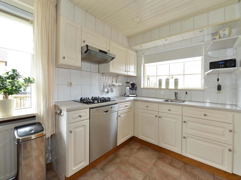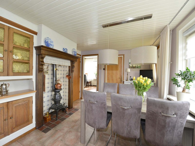 Volgens goed Twents gebruik komen we achterom. Via de hal met toilet en meterkast komen we in de woonkeuken die voorzien is van een inbouwkeuken met de nodige inbouwapparatuur. Ramen aan de zijkant en achterkant zorgen voor een overdaad aan licht en een fraaie uitkijk over de Geukerdijk. Het kantoor/werkkamer en de woonkamer zijn beide aan de voorzijde gelegen en vanuit de keuken bereikbaar. Evenals de provisiekelder die onder de trap is gelegen.