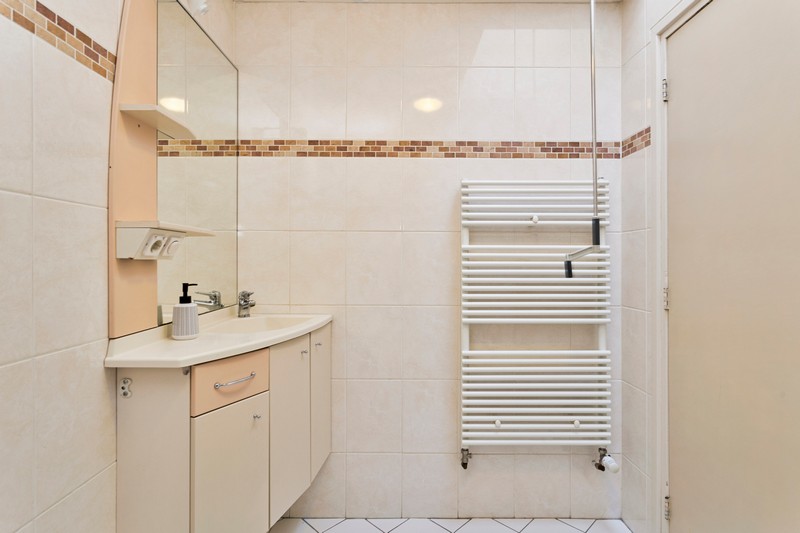 Op de 1e verdieping vinden we 3 ruime slaapkamers en een badkamer die voorzien is van een wastafelmeubel, douchecabine en handig 2e toilet. En ondanks het feit dat de badkamer inpandig gesitueerd is vinden we er toch voldoende daglicht door de koepel op het dak!