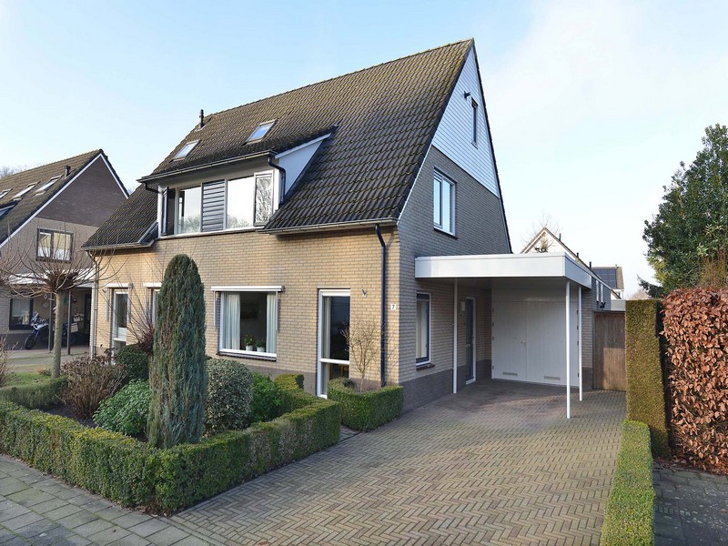 De dichte keuken is aan de achterzijde gelegen en voorzien van inbouwkeuken. Via de achterentree is ook de garage bereikbaar. Evenals de rest van de woning is deze in spouw gebouwd. Voor de garage vinden we een carport.