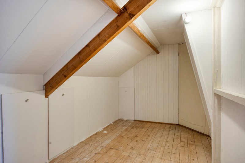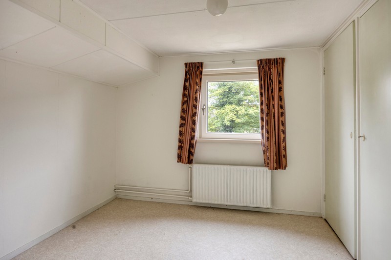 De beide slaapkamers vinden we, lekker rustig, aan de achterzijde van de woning. Via de ouderslaapkamer kunnen we ook in de badkamer komen die is voorzien van douche en wastafel.