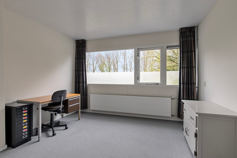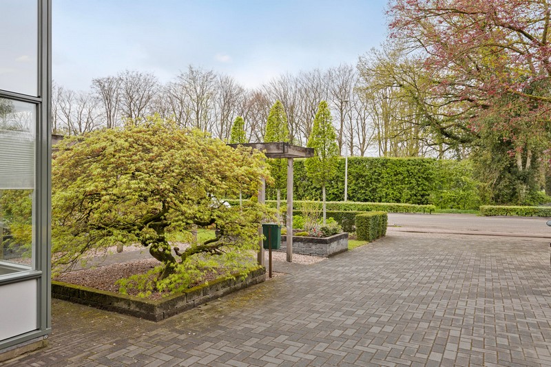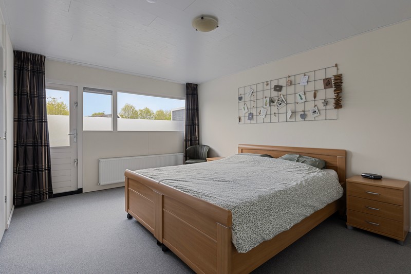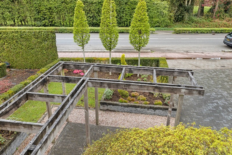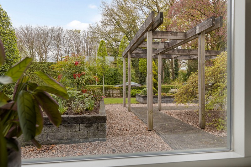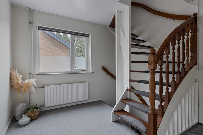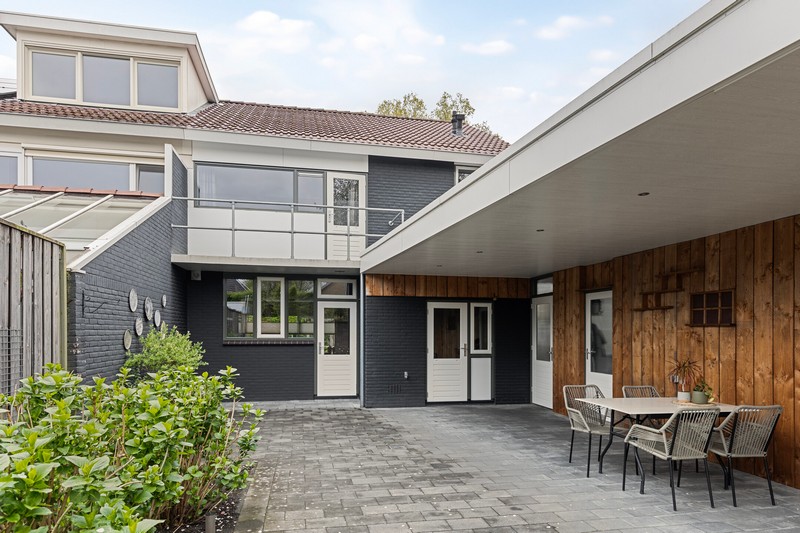 Bij aankomst valt de ruime voortuin met een oprit voor meerdere auto’s meteen op. Carport en garage zorgen voor extra gemak en biedt ruimte voor fietsen, motoren of extra opslag.