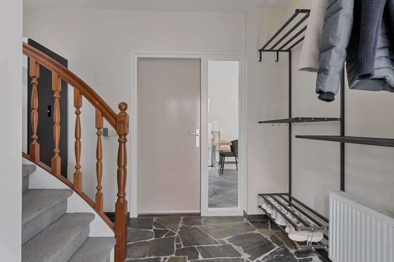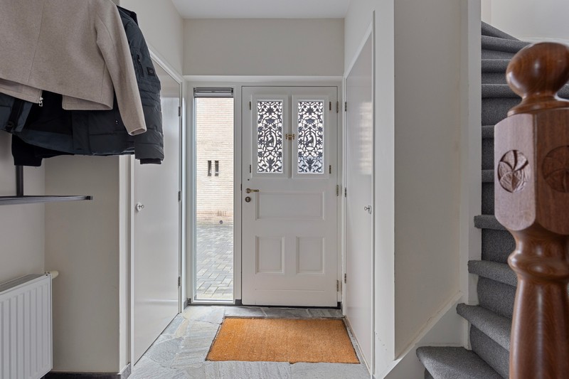 Bij binnenkomst kom je in de hal met meterkast, CV-ruimte met waterontharder en trapopgang naar de 1e verdieping.