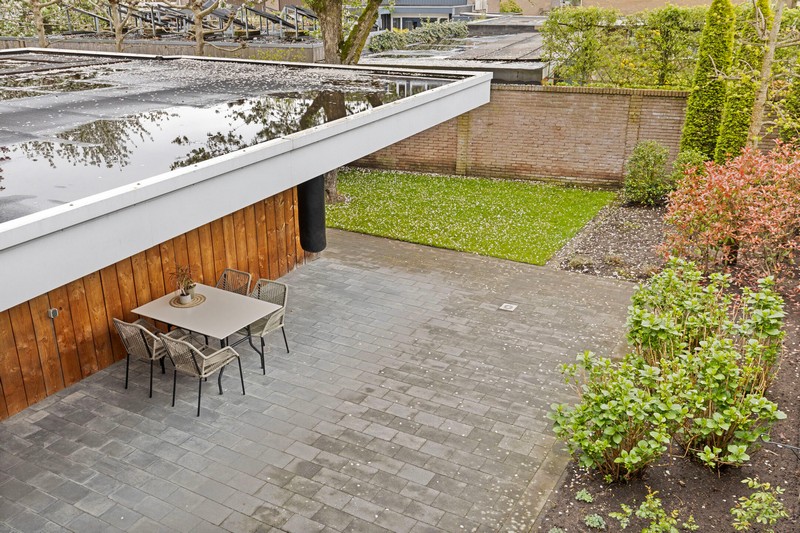 De achtertuin ligt op zuidoosten en is zeer ruim. De achtertuin is onderhoudsarm aangelegd. Dat betekent genieten en zo min mogelijk werk! Je kunt er overdekt zitten of verschillende zitjes creëren. Met een ligging op het zuidoosten biedt het alle speelruimte voor kinderen of om zelf heerlijk uit te rusten.
