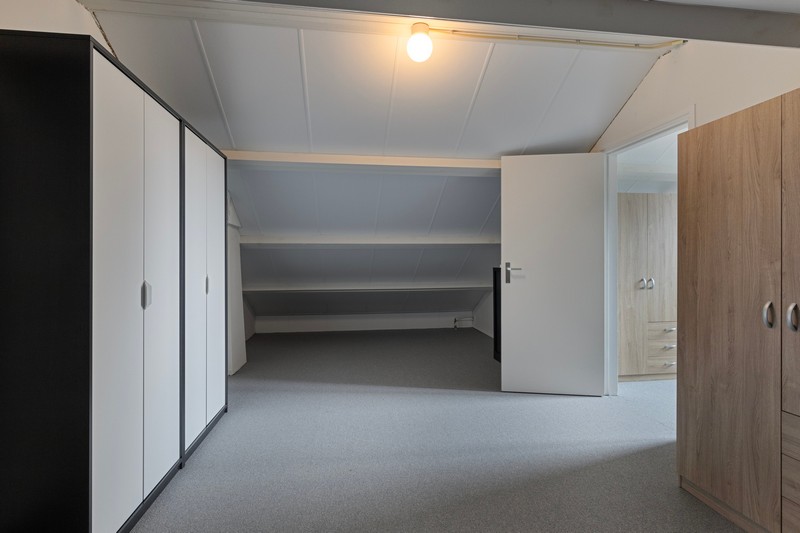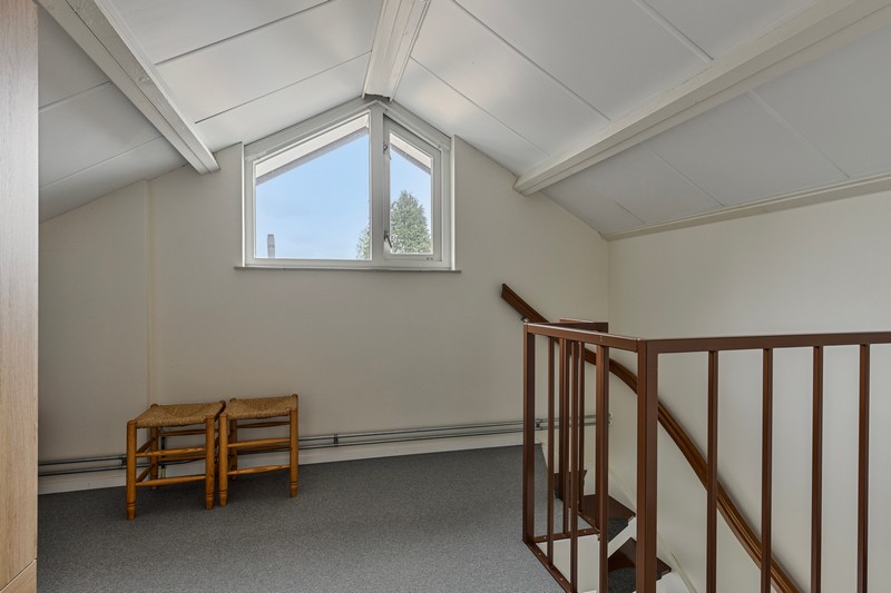 De tweede verdieping is bereikbaar via een vaste trap. We vinden er naast de nodige bergruimte ook een ruime 4e slaapkamer.