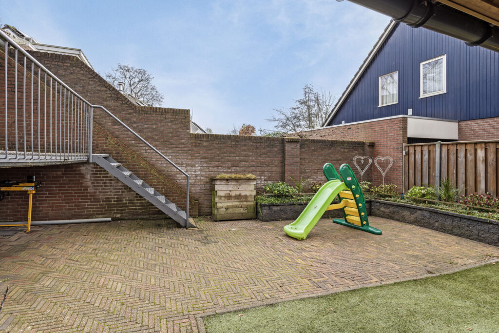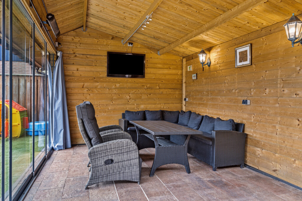 De onderhoudsvriendelijke tuin ligt op het zuidwesten en is achterom bereikbaar. De berging vormt één geheel met de ruime overkapping, die is af te sluiten door glazen schuifwanden. De ideale plek om samen te zijn, tv te kijken tot ‘s avonds laat of gezellig te borrelen met vrienden.