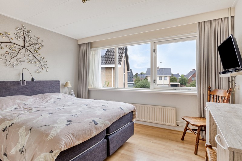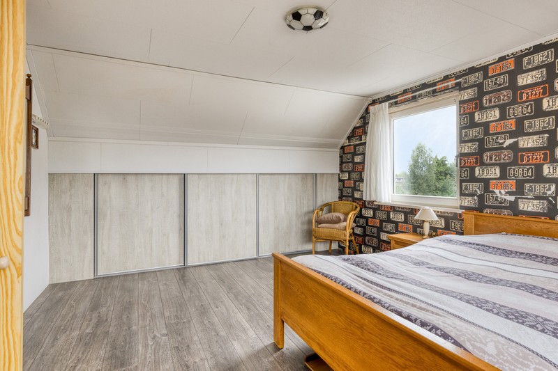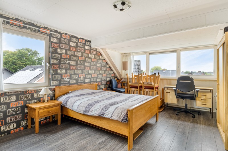 Op de 2e verdieping vinden we een ruime 4e slaapkamer met dakkapel en vaste kastruimte, een CV-ruimte en zolderberging