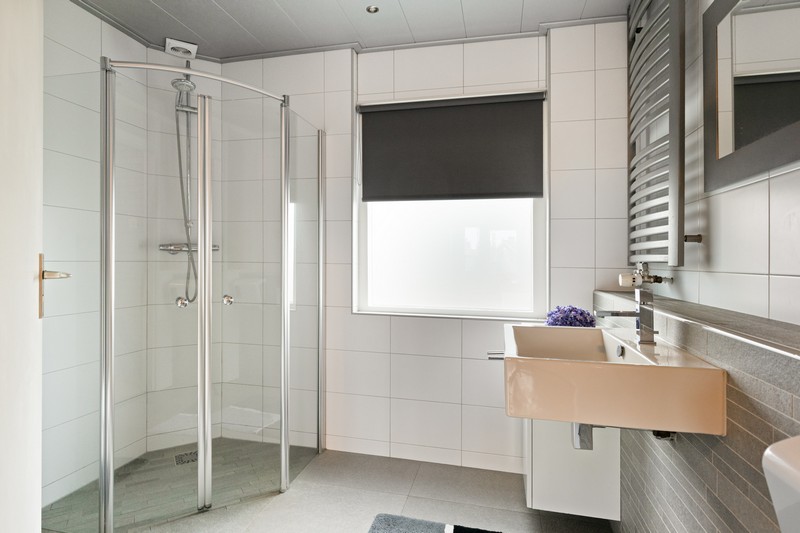 Aanbeland op de 1e verdieping vinden we naast overloop met vaste kastruimte, drie ruime slaapkamers eveneens met vaste kasten. De moderne badkamer is uitgerust met een inloopdouche, wastafel, handig 2e toilet, designradiator en afzuiging.