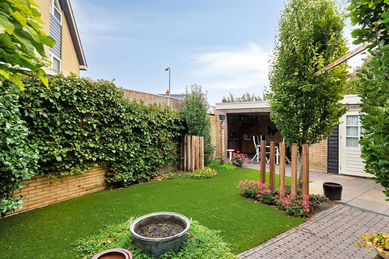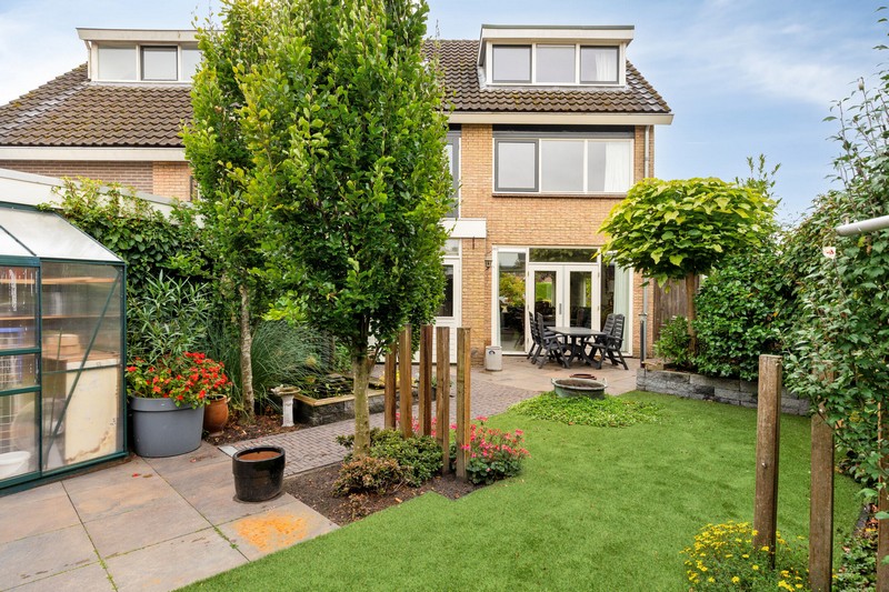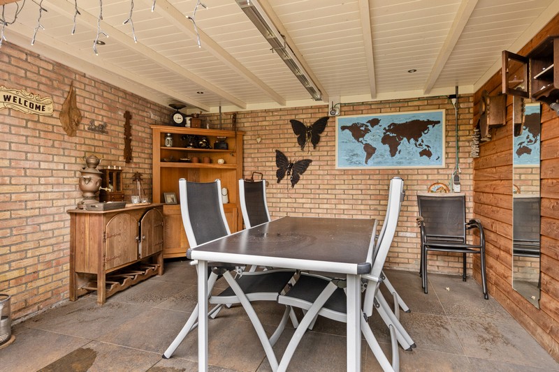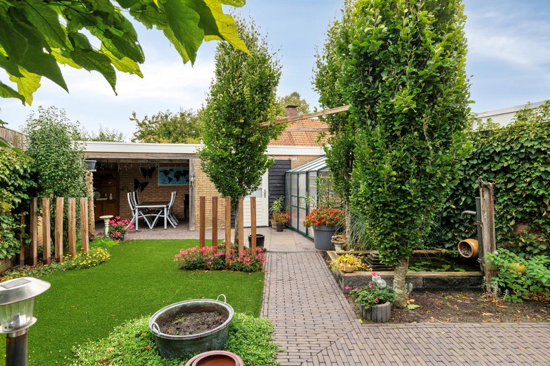 En dat aan zowel de voor- als achterzijde van de woning. De tuin is middels een achterom (langs de zijkant van de woning) en via de garage bereikbaar. Zon en schaduw zijn beide in de achtertuin aanwezig en het is heerlijk vertoeven onder de ruime overkapping grenzend aan de garage/berging. En wat is het ook heerlijk dat de auto’s op eigen terrein kunnen staan!