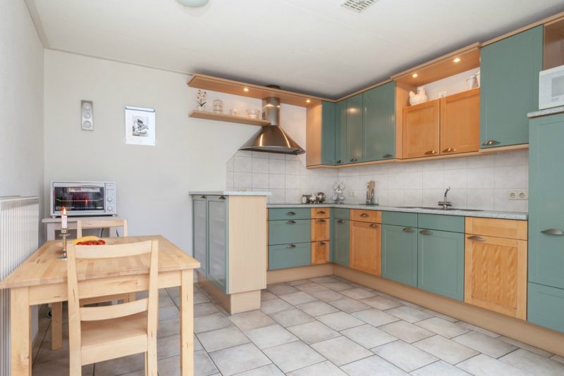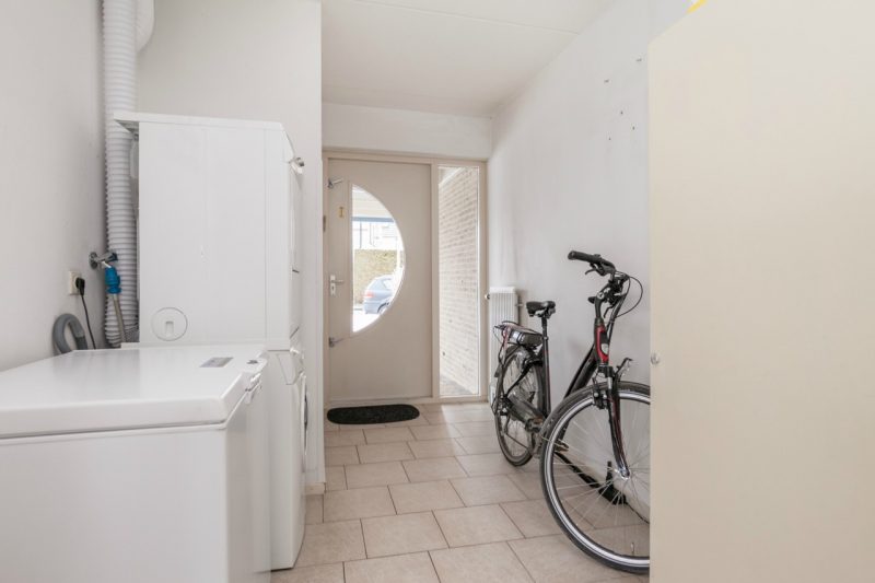 De woning zet u waarschijnlijk meerdere keren op het verkeerde been: Onder de carport vindt u twee toegangsdeuren. En beide deuren horen bij deze woning! De linker deur leidt naar de berging en deze biedt ruimte aan fietsen, of kan dienen als bijkeuken. Vervolgens kunt u doorlopen naar de woonkeuken met schuifpui naar de achtertuin. Met een oppervlakte van 45 m² zijn woonkamer en keuken lekker ruim.