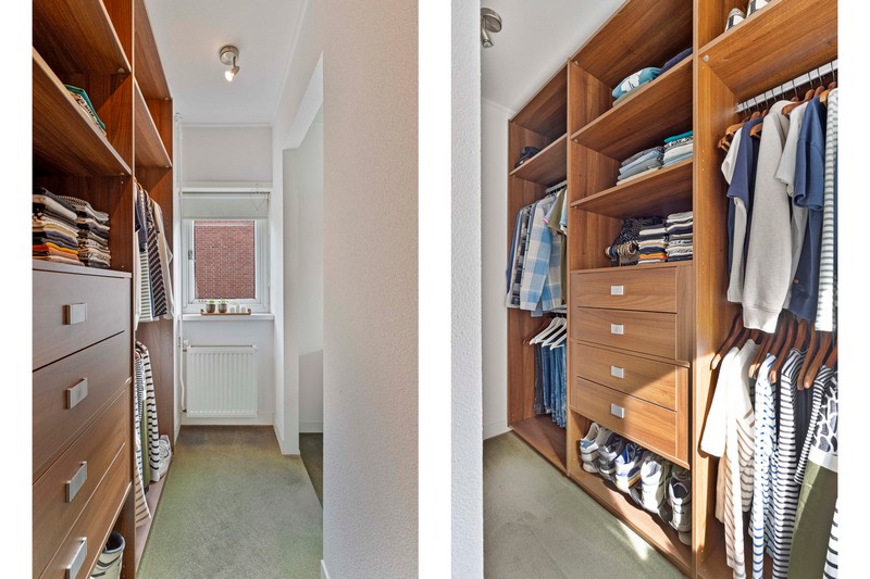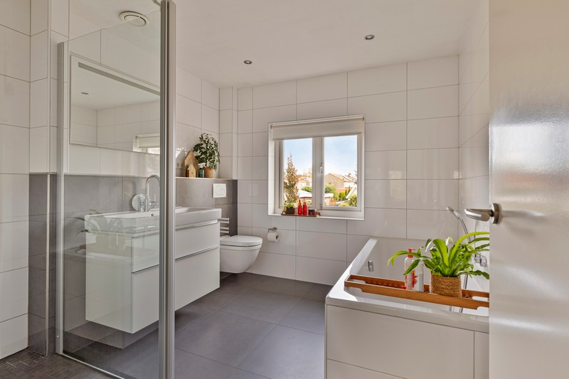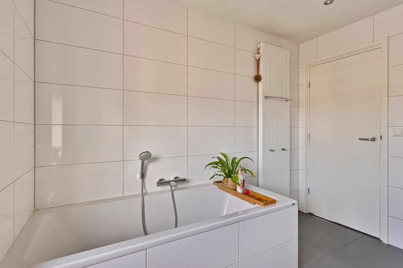Via de ruime overloop zijn de slaapkamers, de badkamer en de trap naar de bovenste verdieping bereikbaar. Op de eerste verdieping zijn drie slaapkamers, een balkon en een walk-in closet te vinden. De badkamer is prachtig. De kleuren, materialen en voorzieningen zijn goed op elkaar afgestemd en helemaal van deze tijd. Er is een riante inloopdouche, ligbad, breed wastafelmeubel en toilet.