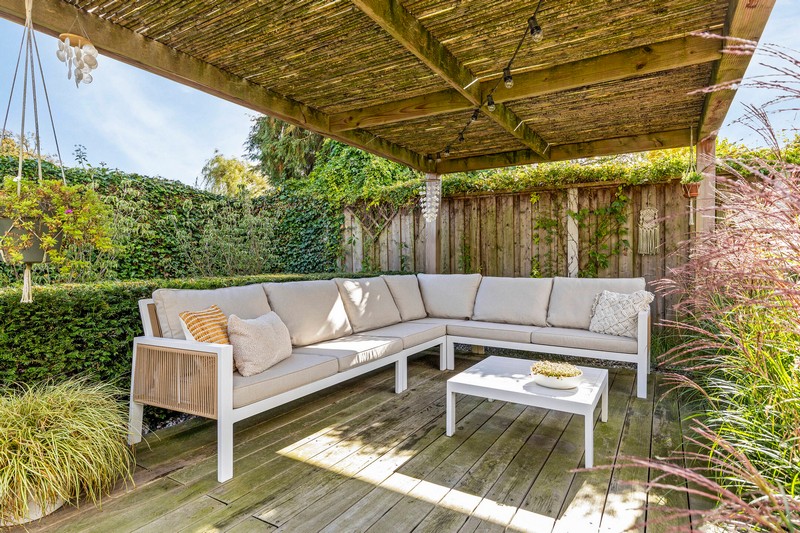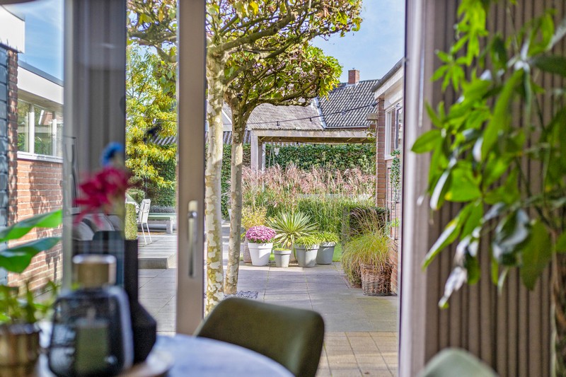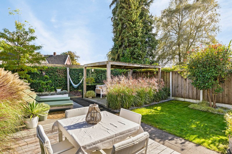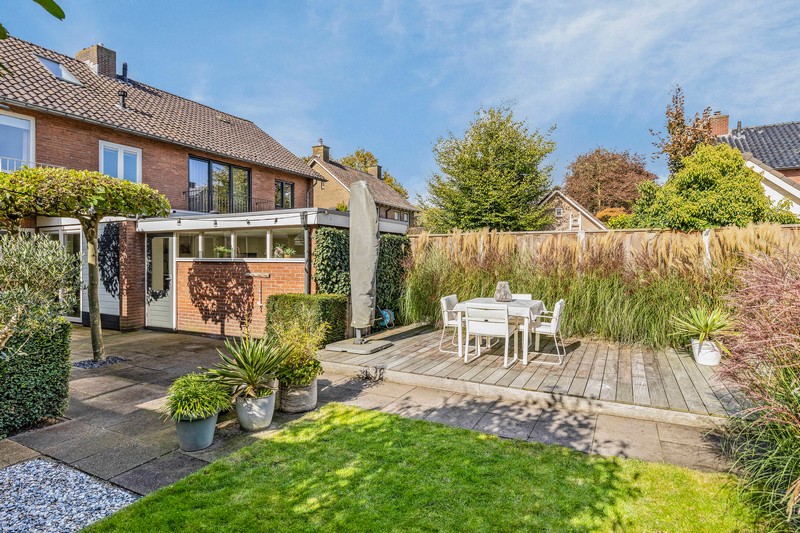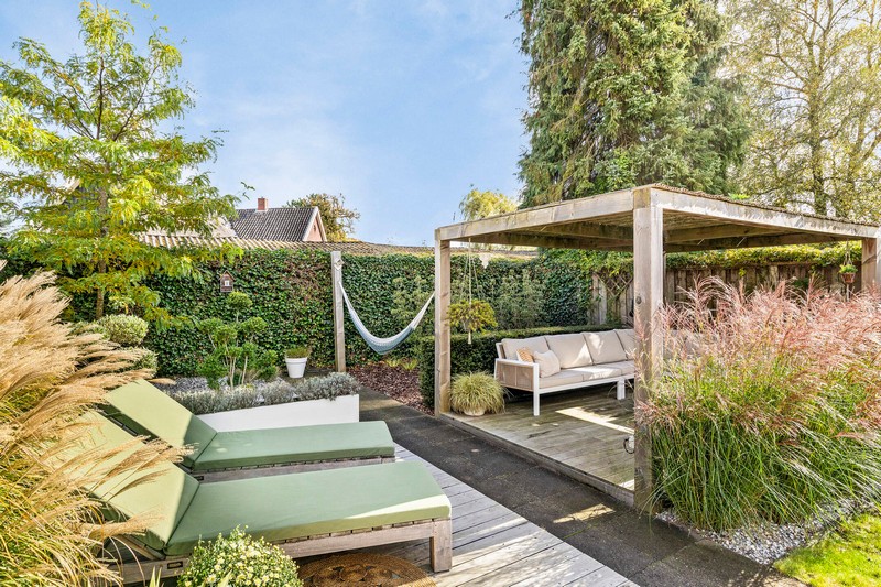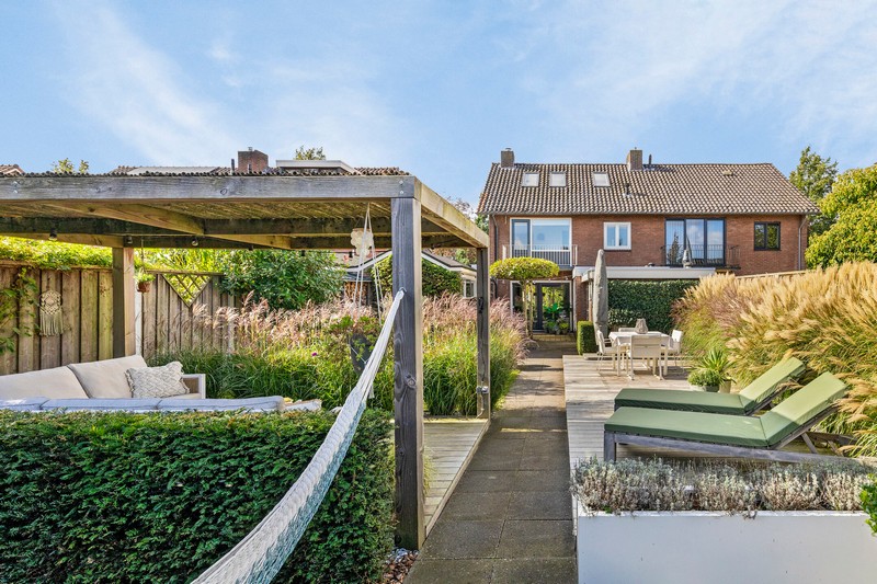 De fraai aangelegde achtertuin is in één woord top te noemen. Deels voorzien van straatwerk, deels voorzien van groen. Er zijn verschillende terrassen zodat je altijd in de zon maar ook, onder de overkapping, in de schaduw kunt zitten. En privacy is gegarandeerd.