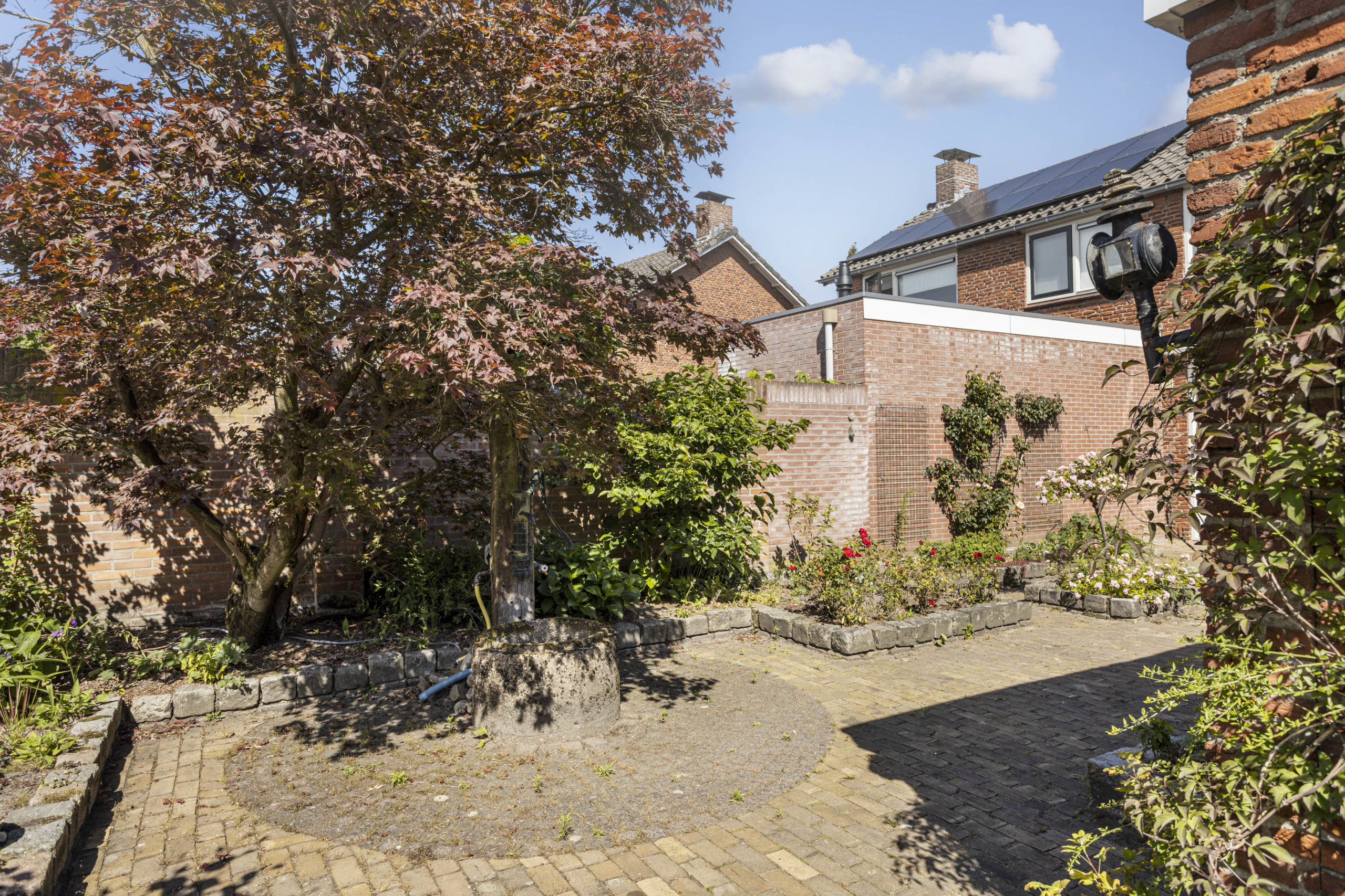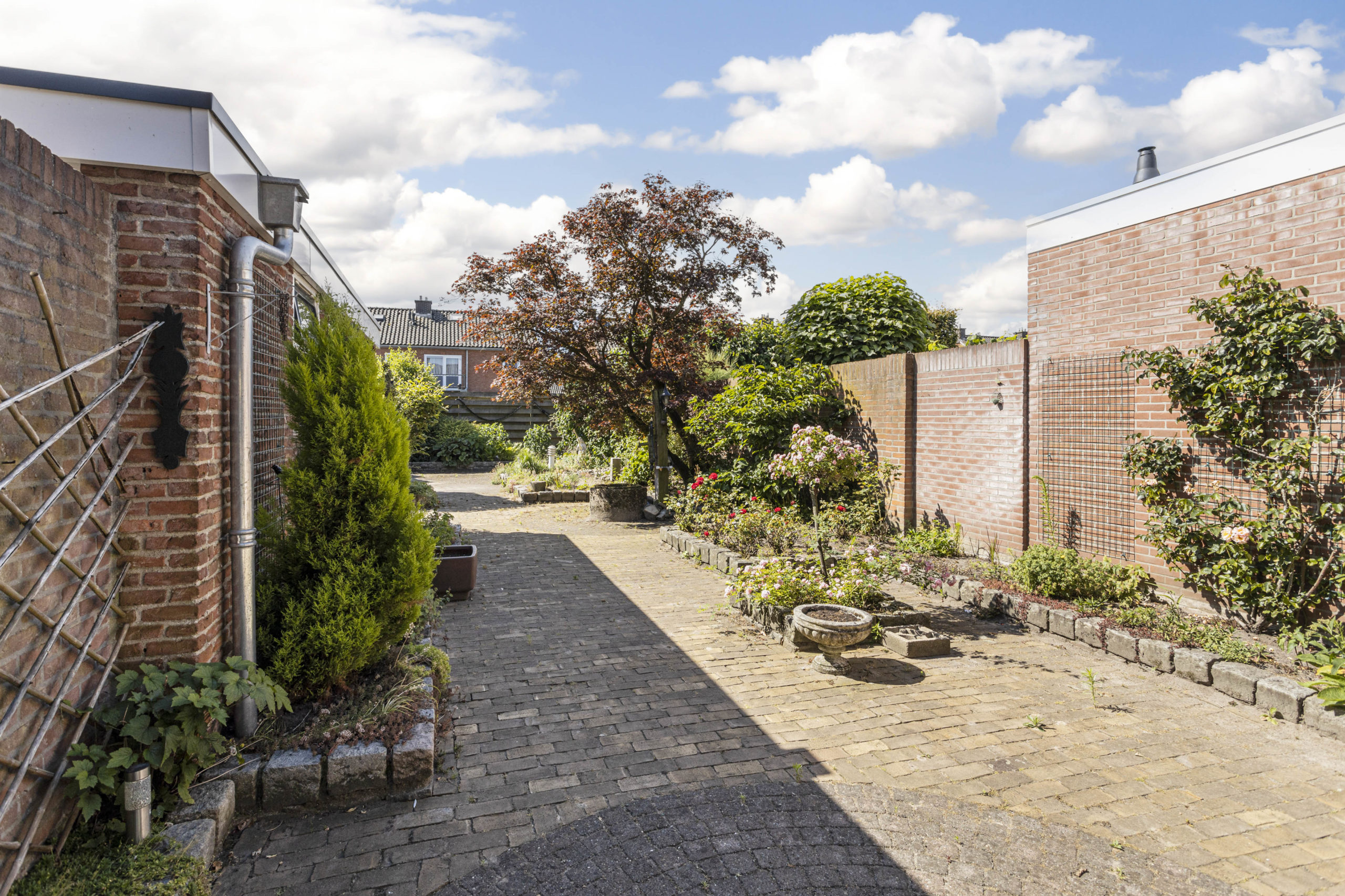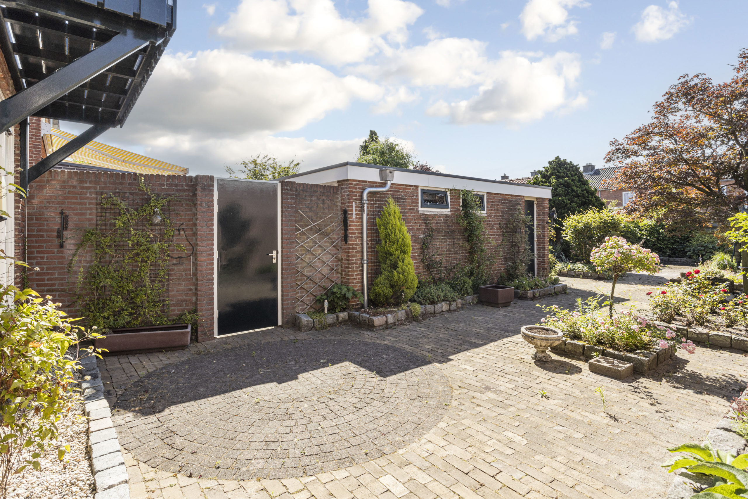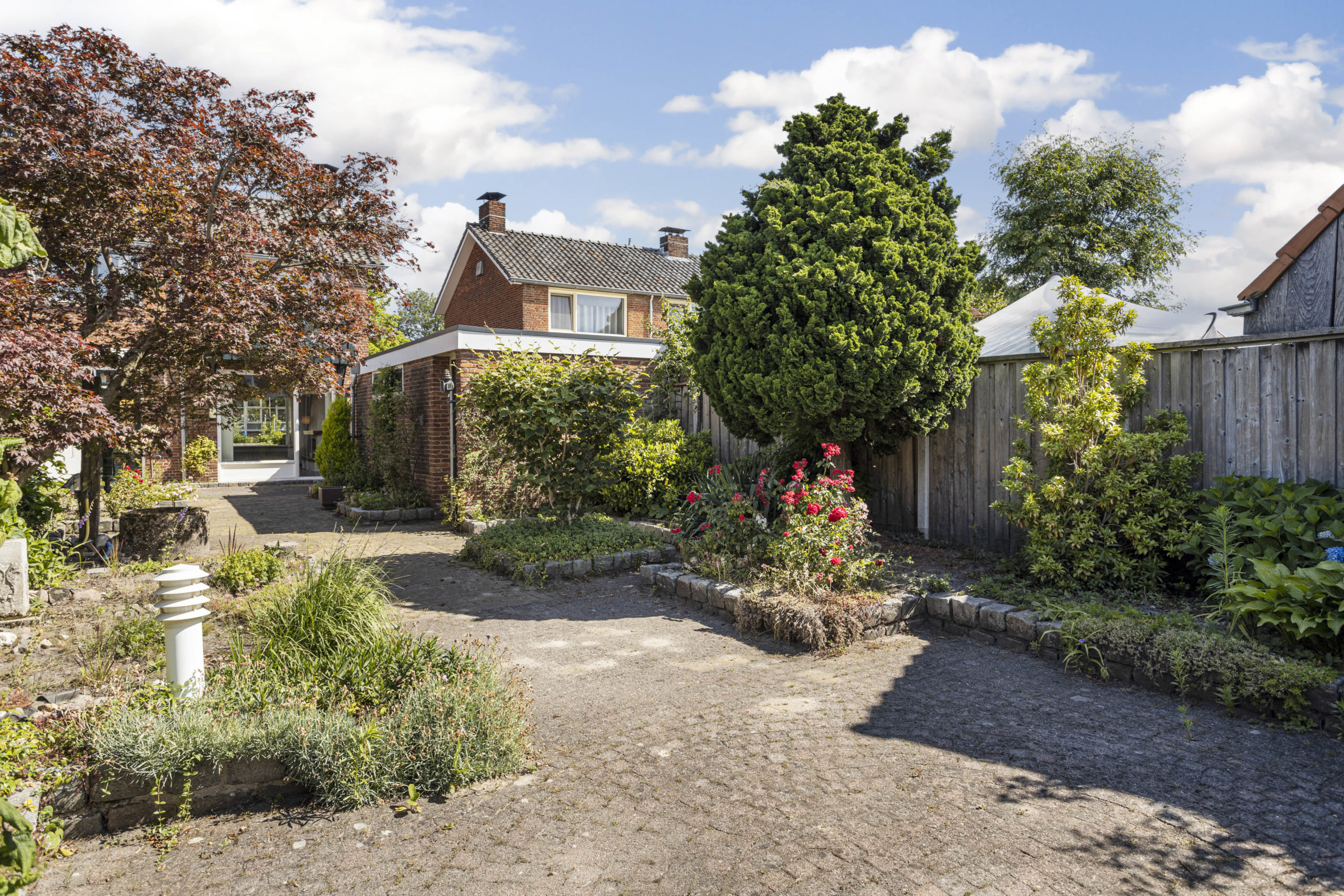 Zowel aan de voorzijde als achterzijde vinden we een tuin. De zonnige achtertuin recht op het zuiden gelegen en met een diepte van ruim 20 meter is achterom bereikbaar. De oprit leidt naar een ruime vrijstaande stenen garage met kunststof dak en sectionaaldeur met afstandsbediening.