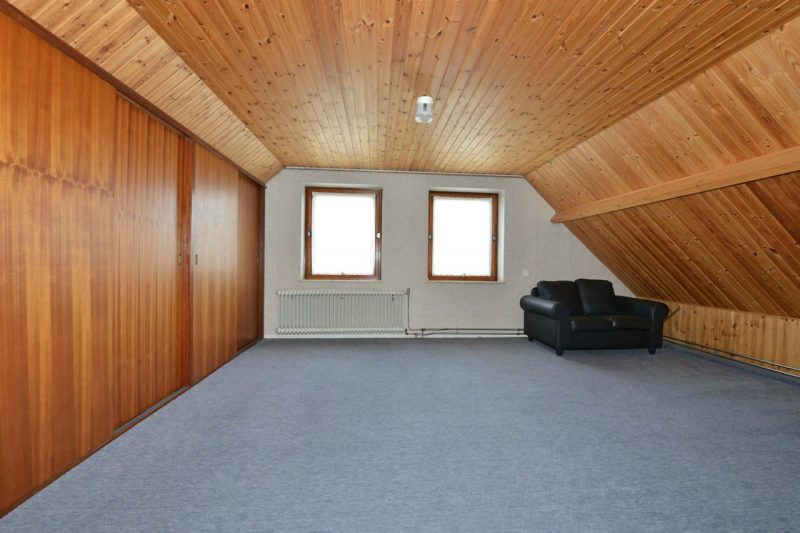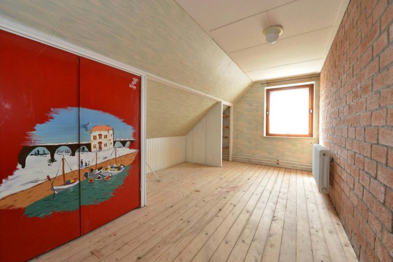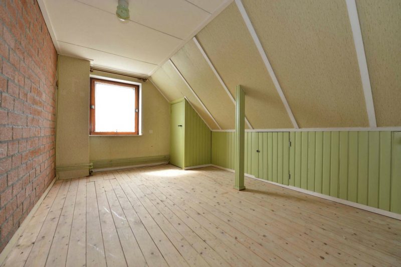 Op de 1e verdieping vinden we de nodige bergruimte onder de schuine kanten, 3 zeer ruime slaapkamers met de nodige vaste kastruimte en een stookruimte.
