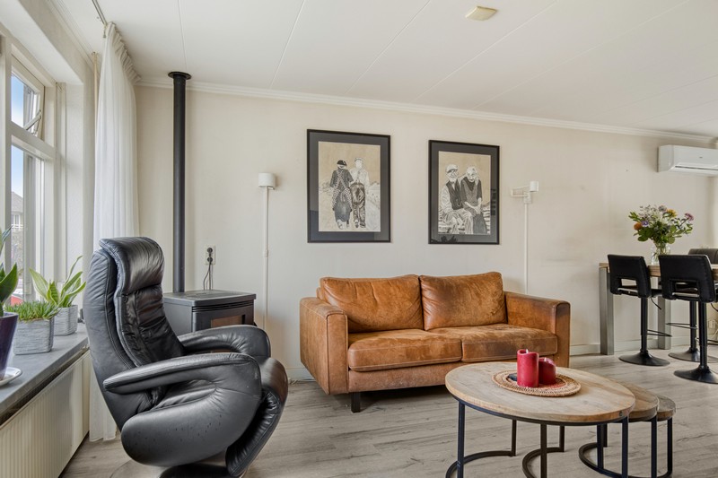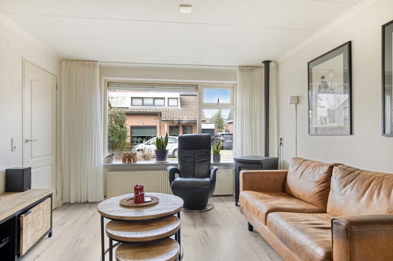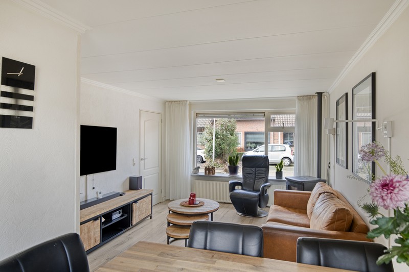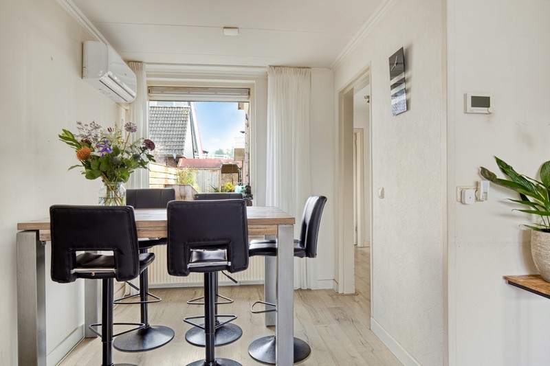 Wellicht wordt u op het verkeerde been gezet als u de foto van de voorgevel bekijkt. De woning loopt namelijk aan de achterzijde ver door. De woning heeft daardoor een groot en praktisch ingedeeld woonoppervlak. Via het halletje aan de voorzijde komt u de woonkamer binnen waarin een moderne pvc-vloer is gelegd en in 2024 is een airco geplaatst.