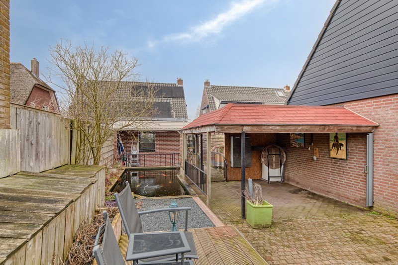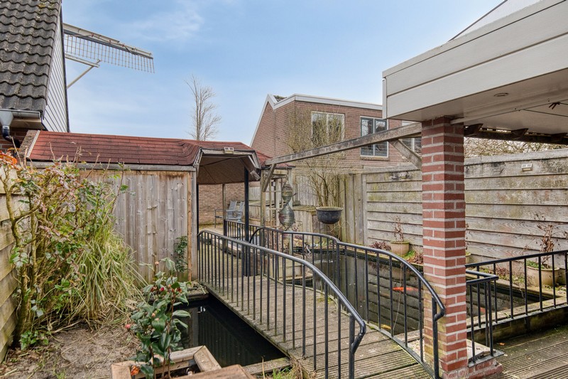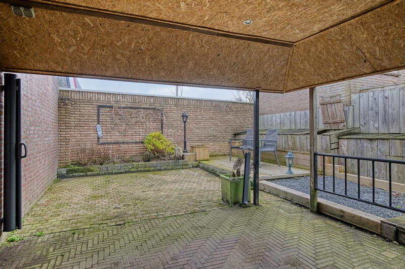 Het speelse en toch functionele karakter van de tuin wordt onderstreept door het bruggetje over de vijver. Eenmaal over de brug gekomen kunt u heerlijk beschut en overdekt zitten bij de sfeerhaard. Als u liever van de zon wilt genieten dan kan dat uiteraard ook. De 15 meter diepe tuin is namelijk georiënteerd op het zuidoosten. Het vakantiegevoel begint dus al volop in uw eigen tuin en ook een ideale ligging voor de 14 zonnepanelen.