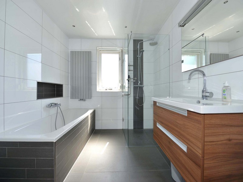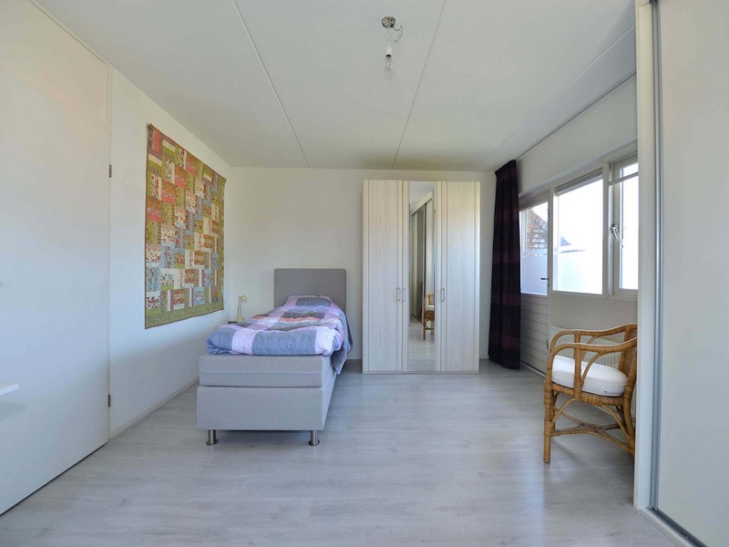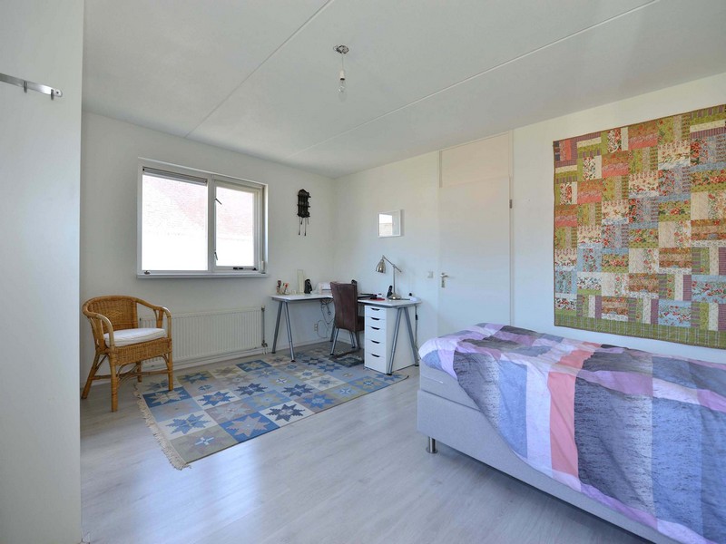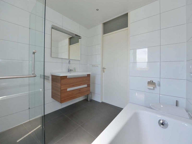 En ruimte voor een vierde. Op de eerste verdieping bevinden zich twee ruime slaapkamers, beide voorzien van een handige vaste kastruimte met schuifdeuren. De master bedroom is handig op te delen in 2 kleinere slaapkamers mocht dat nodig zijn en heeft ook nog een balkon. De badkamer is modern en smaakvol ingericht met antraciet grijze en witte tegels en voorzien van een ligbad, inloopdouche met regendouche, badmeubel met wastafel en zwevend toilet.