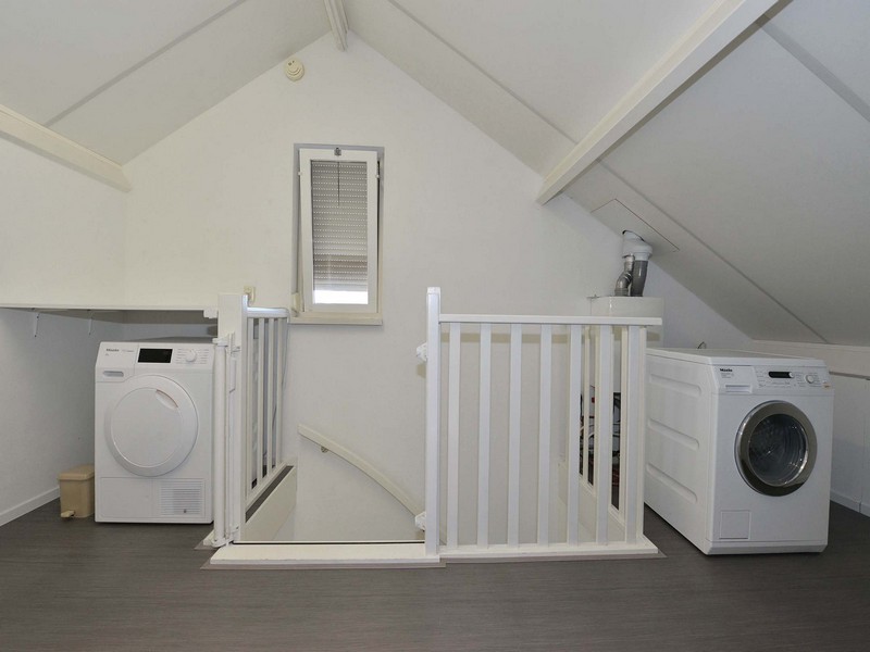 Op de tweede verdieping vinden we naast de overloop, met ruimte voor een wasmachine en droger, een ruime derde slaapkamer en een verrassend grote zolderberging, toegankelijk via een schuifdeur. Ook achter de knieschotten is veel bergruimte.