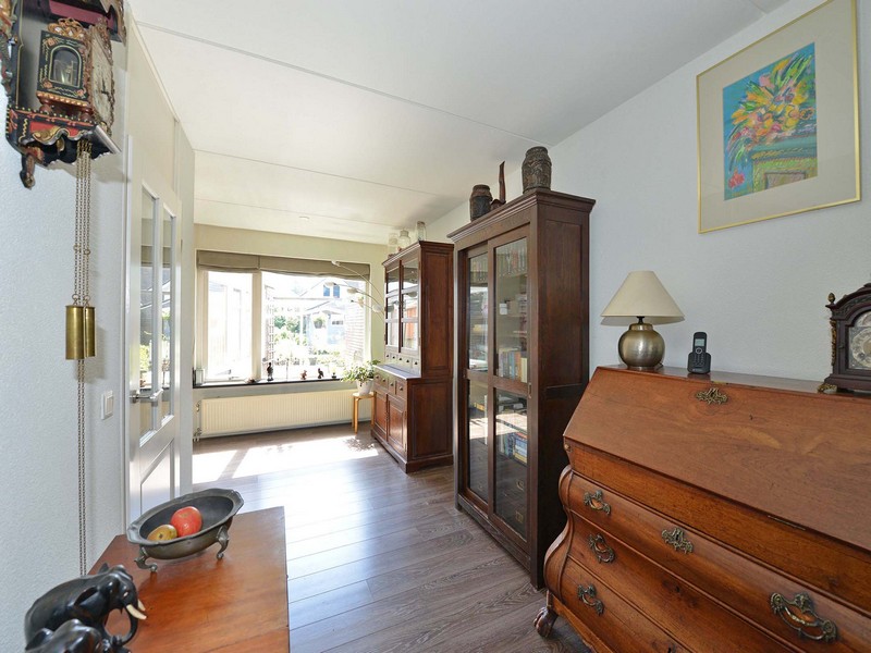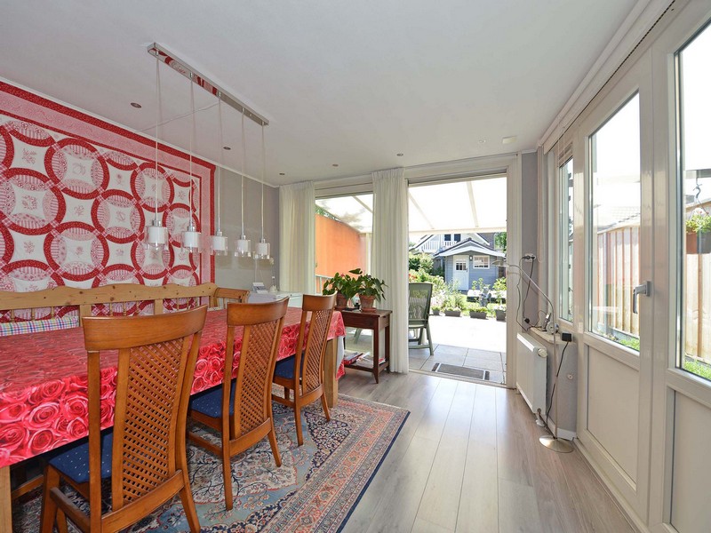 Vanuit de hal, met meterkast, trapopgang en gemoderniseerde toilet komen we in de L-vormige woonkamer. Deze heeft een mooie lichtinval en strakke en frisse uitstraling. De erker zorgt voor nog wat extra ruimte. De inbouwkeuken in hoekopstelling is voorzien van een gaskookplaat, afzuiging, vaatwasser, combimagnetron en koelkast. Vanuit de keuken stap je de ruime tuinkamer in. Onderhoudsarme kozijnen aan 2 zijden van de kamer met dubbele tuindeuren aan de ene kant en een schuifpui aan de andere zijde zorgen voor een zee aan licht. Bij mooi weer staat de schuifpui de hele dag open. En dat kan ook rustig want aan de achterkant zit ook nog een fraaie overkapping.