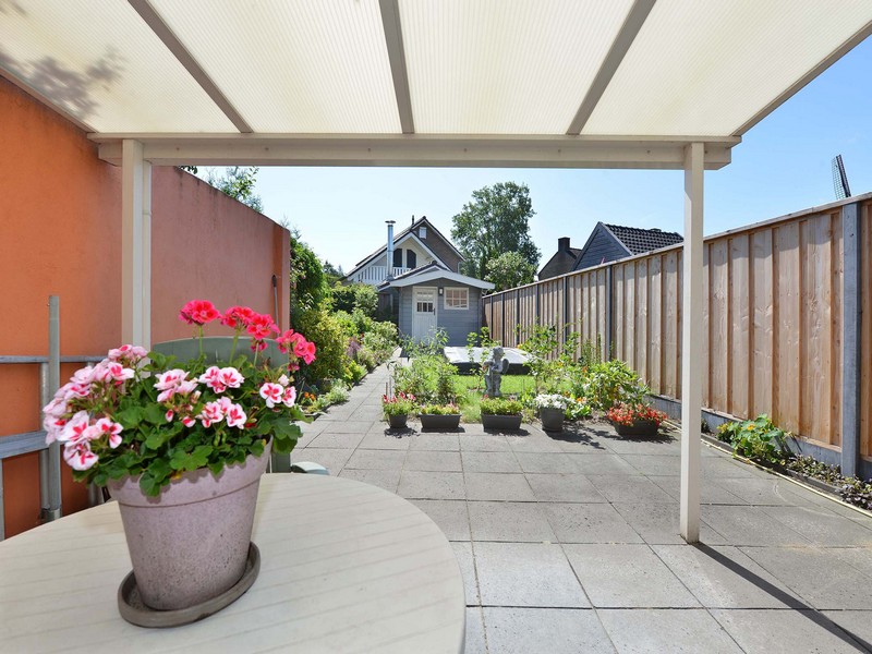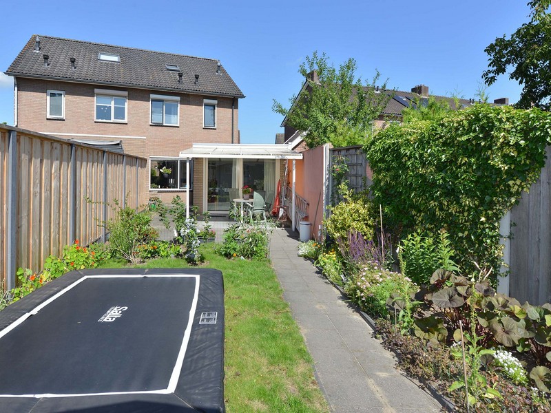 De diepe en omsloten achtertuin is gelegen op het zuidoosten. Het grootste gedeelte van de dag is er zon in de achtertuin die bovendien veel privacy biedt. In de tuin vinden we voorts een handige tuinberging. De fietsen kunnen in de berging aan de voorzijde staan die van binnenuit bereikbaar is. Voor deze bergruimte bevindt zich de carport en een ruime oprit waar met gemak 2 auto’s kunnen staan. Door de inrichting van de openbare ruimte is de Nachtegaalstraat bijzonder rustig met alleen maar bestemmingsverkeer. Bovendien kun je lopend naar het centrum en naar de basisschool en hoef je geen drukke wegen over.