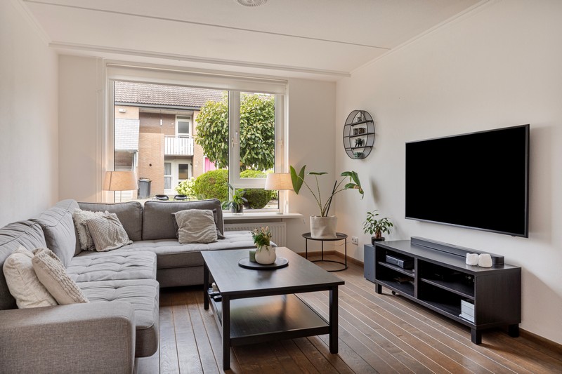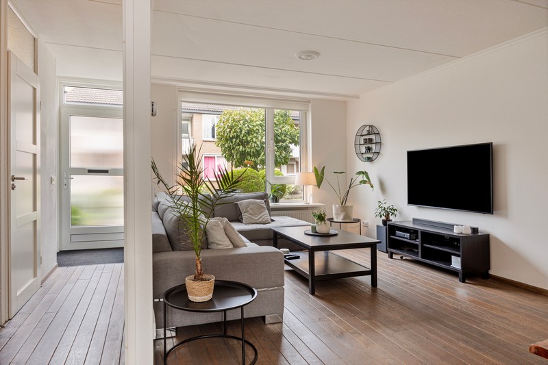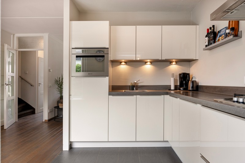 Je komt binnen in de hal, waar ook de meterkast en het toilet zich bevinden. Als je de woonkamer binnenkomt word je verwelkomd door de lichte en gezellige sfeer. De open keuken is modern en is voorzien van een gaskookplaat, afzuiging, koelkast, combimagnetron en vaatwasser en biedt voldoende ruimte om heerlijk te kunnen koken en te genieten van gezellige diners met vrienden en familie, met uitzicht op de gezellige achtertuin.