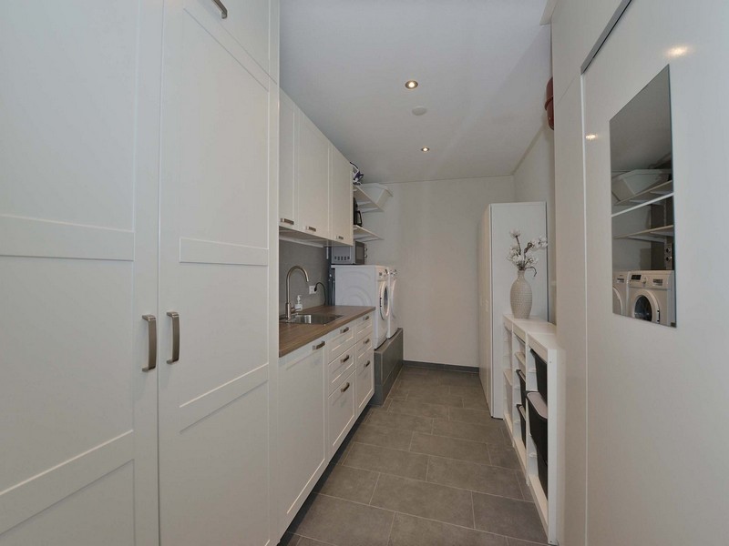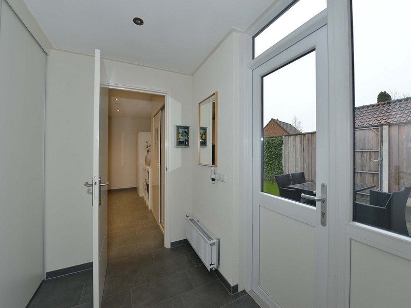 Volgens goed Twents gebruik komen we binnen via de achterzijde. Tussen de oorspronkelijke berging en de woning is een handige achterentree met schuifkasten gebouwd. De oorspronkelijke berging is omgebouwd naar een bijkeuken. De wasmachine en droger kunnen er makkelijk staan en de bijkeuken is ook nog voorzien van een modern keukenblok met koelkast, vriezer en spoelbak.