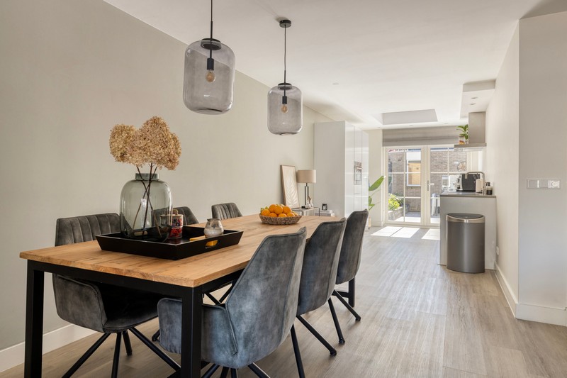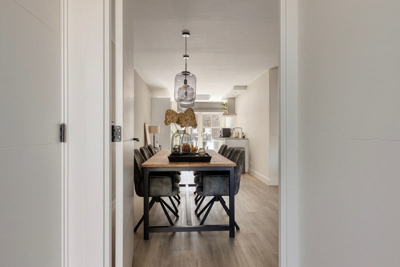 Door de uitbouw aan de achterzijde is een royale leefruimte ontstaan waardoor je moeiteloos de comfortabele zithoek en een grote eettafel combineert. Dé plek voor lange avonden tafelen of ontspannen met vrienden en familie.