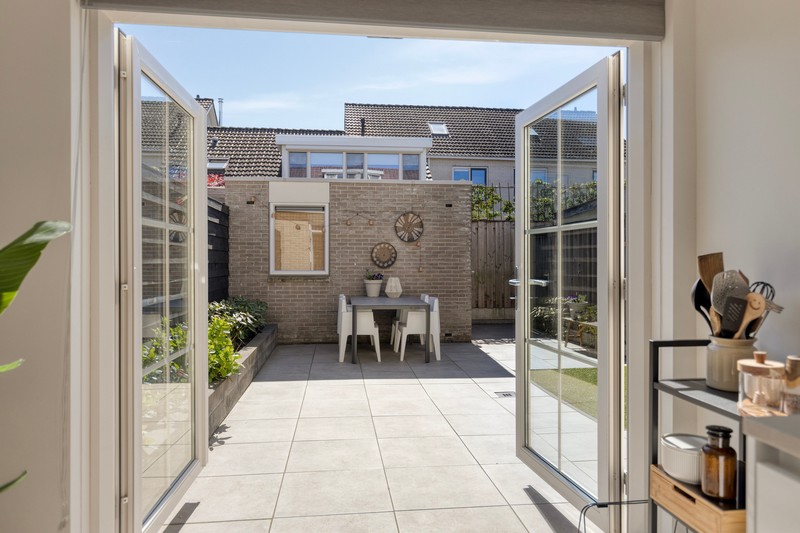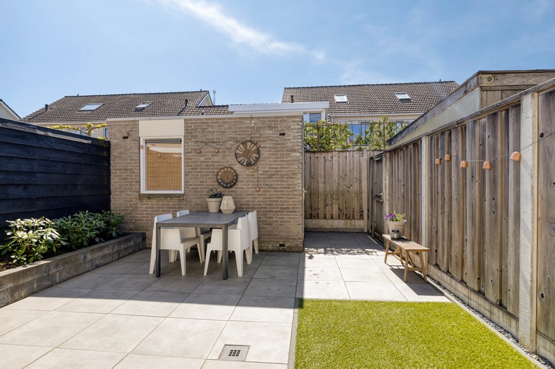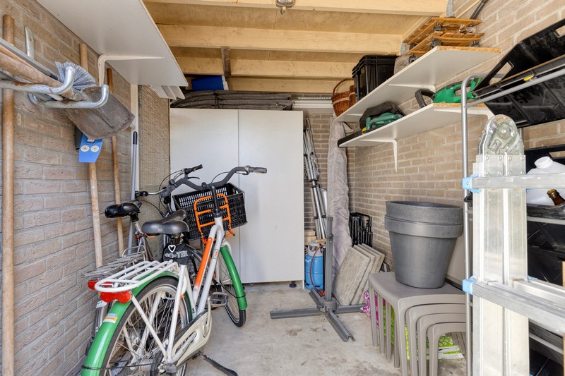 De zonnige onderhoudsarme achtertuin is op het zuidwesten gelegen dus dat betekent dat je het grootste gedeelte van de dag kunt genieten van de zon. Een heerlijke plek om te ontspannen. Achterin vind je een berging, ideaal voor fietsen en tuingereedschap. De tuin is achterom te bereiken. Extra voordeel: je bent de laatste aan dit pad waardoor de tuin dieper is dan die van de buren!
