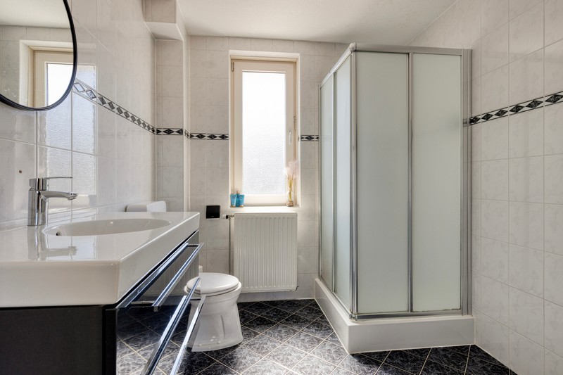 Op de eerste verdieping vind je drie goede slaapkamers en een badkamer met wastafel, ruime douche en tweede toilet. Mooie ruimtes en prettig qua sfeer.