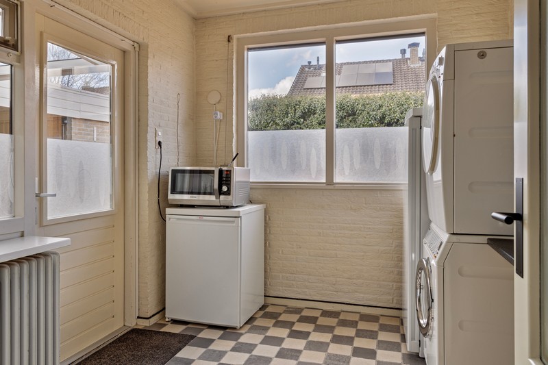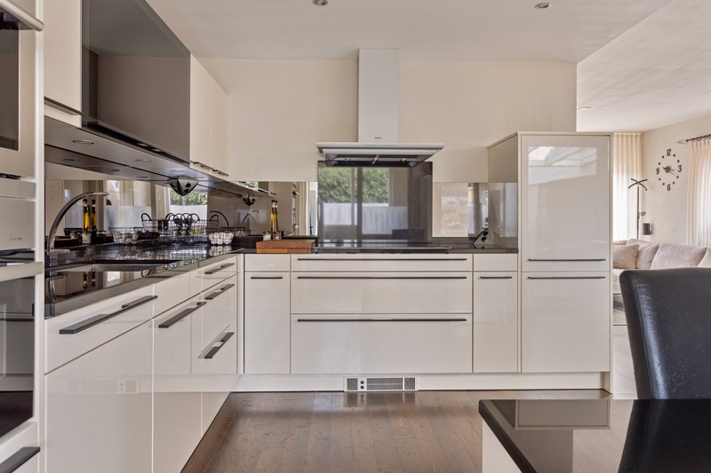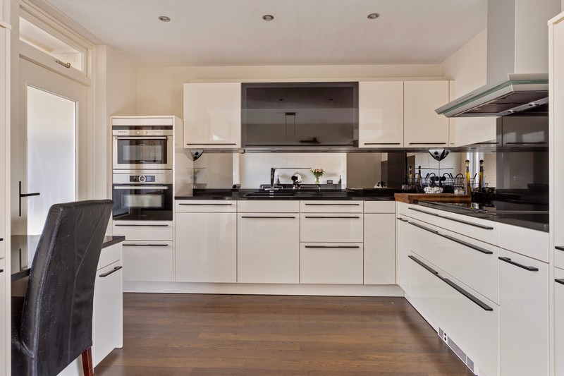 Aan de achterzijde van de woning vind je de SieMatic inbouwkeuken. Deze is voorzien van een inductiekookplaat, afzuiging, koelkast, vaatwasser en combimagnetron. Aan ruimte geen gebrek! Ook is er genoeg plek om een eettafel te plaatsen waar je vrienden en/of familie kunt uitnodigen voor een gezellig etentje. De achterzijde is voorzien van een schuifpui waardoor binnen en buiten één geheel zijn. De deur in de keuken zorgt voor de verbinding naar de bijkeuken en tuin.