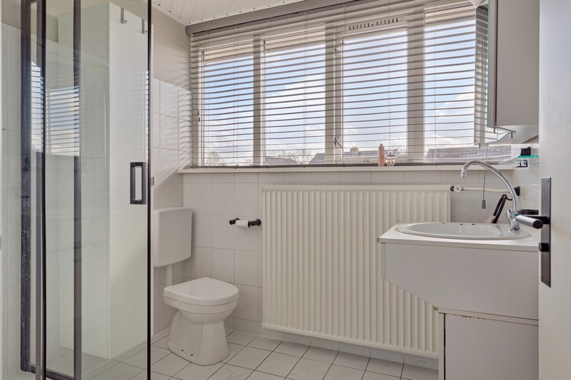 U bent aangekomen op de overloop van de eerste verdieping. De overloop biedt toegang tot drie slaapkamers en de badkamer van de woning. Aan de voorzijde van de woning bevindt zich een ruime slaapkamer, aan de achterzijde van de woning twee slaapkamers. De nette badkamer in lichte kleurstelling, is voorzien van een douche, wastafelmeubel en een toilet.