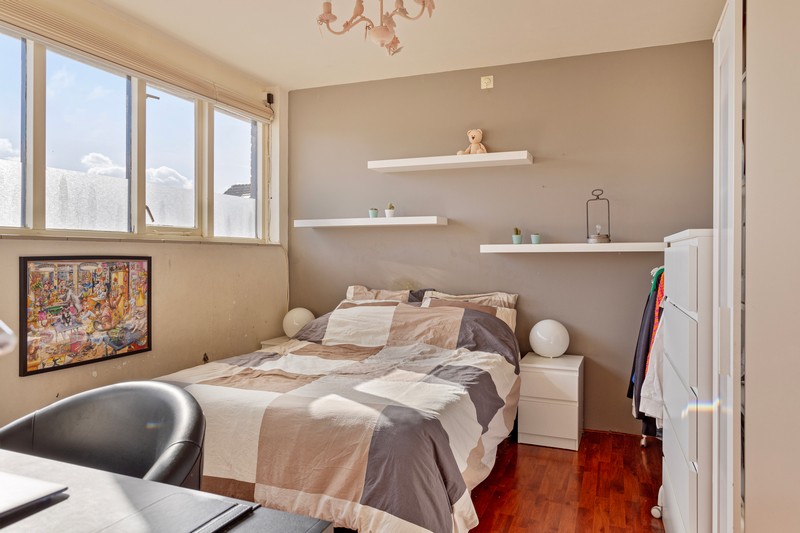 De ruime 4e slaapkamer vinden we op de 2e verdieping. Net als de overloop met aan de beide zijden bergruimte.